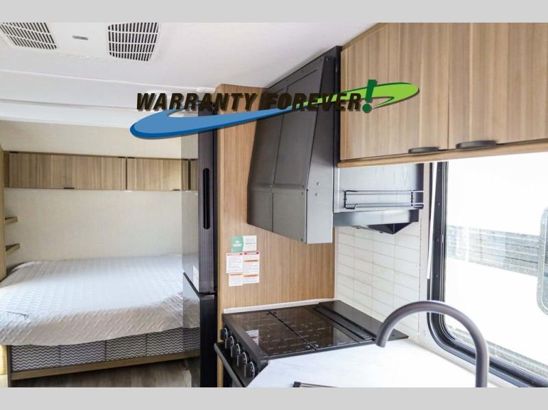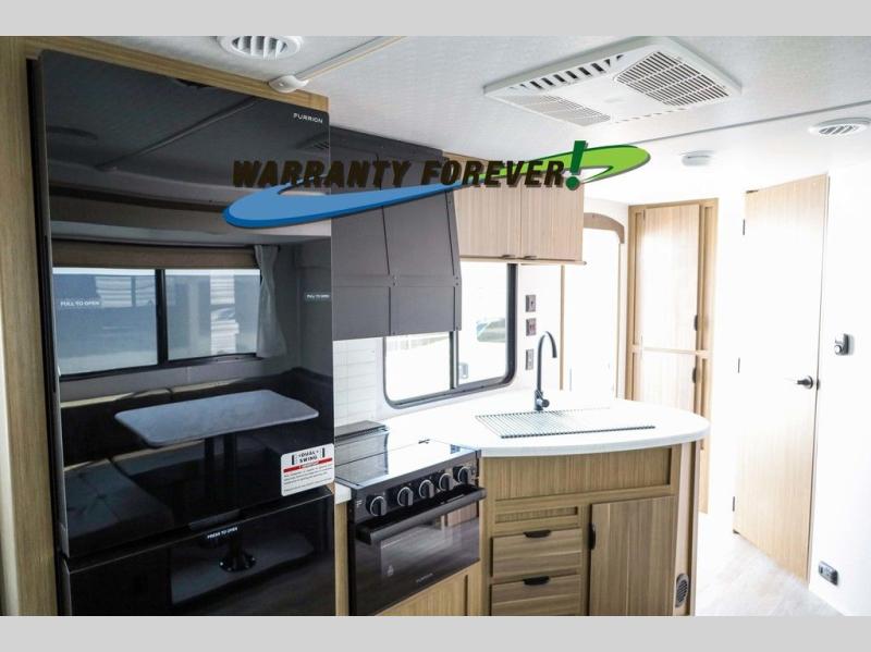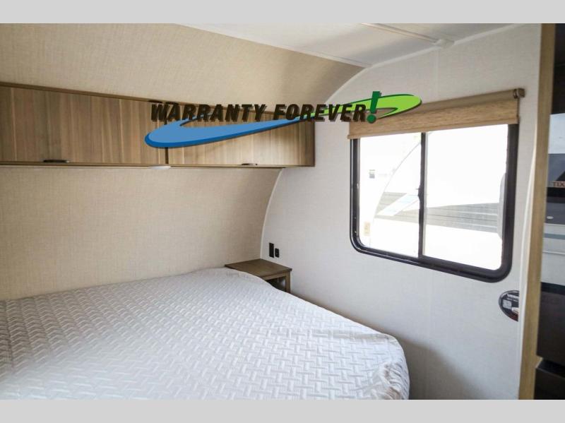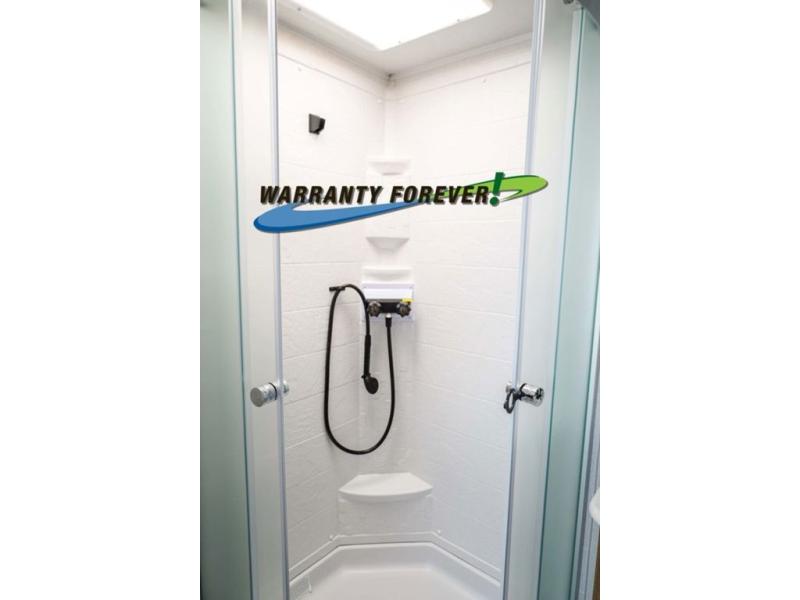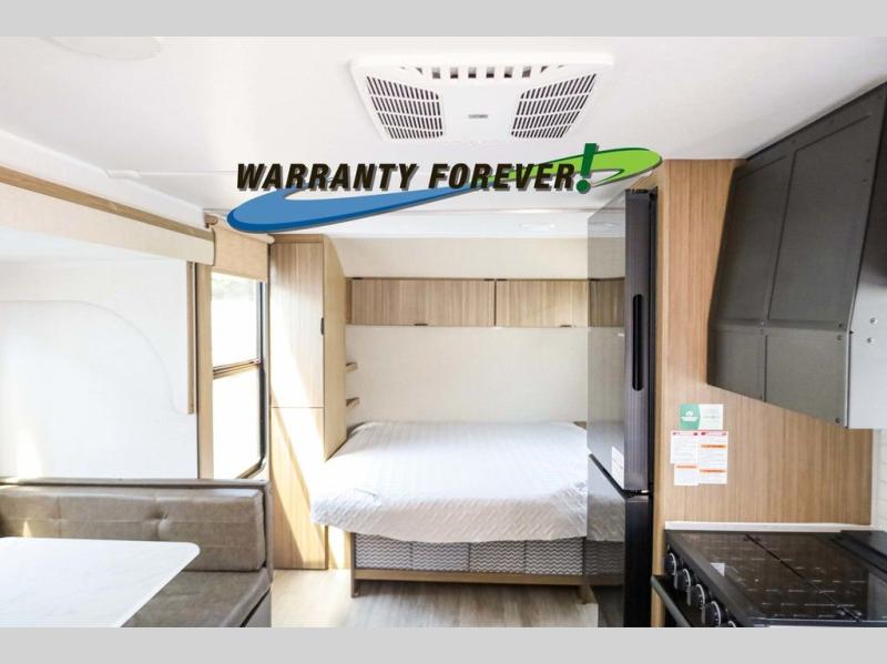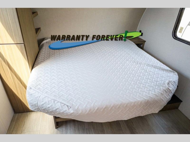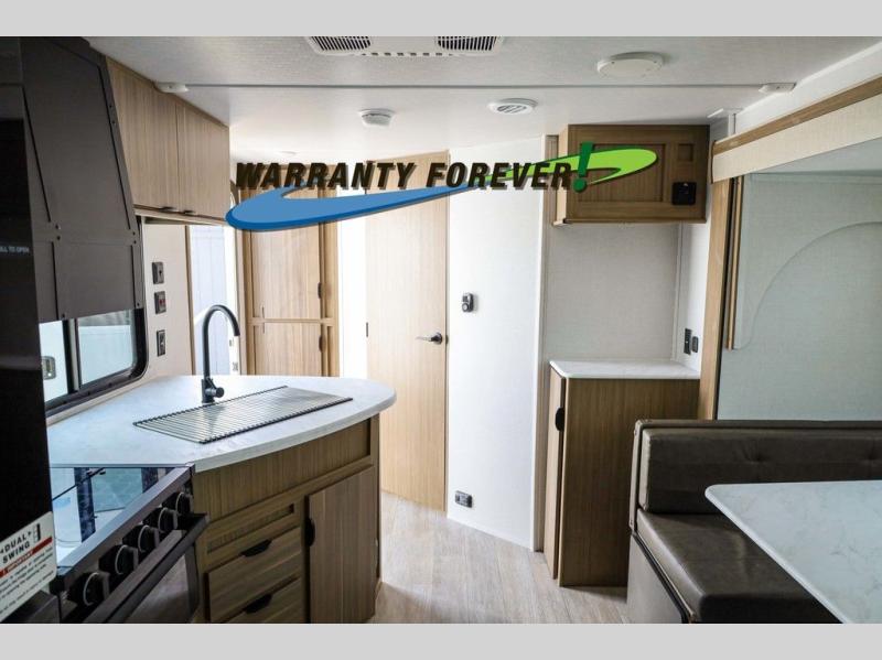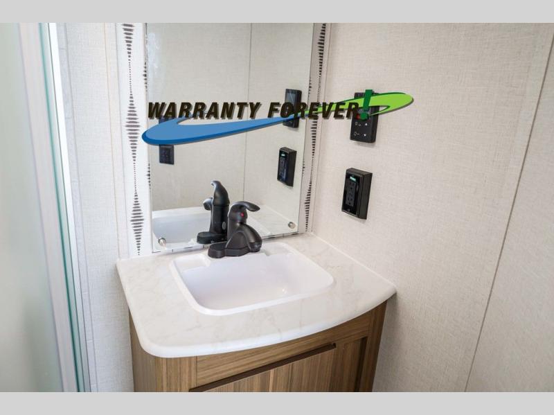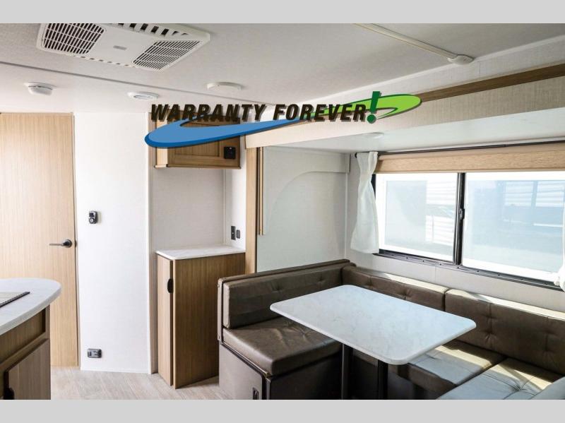 Pick your favorite campsite and load up this travel trailer for a fun weekend getaway! There is a wardrobe/pantry big enough to store your favorite snacks and a cooktop for you to create delicious home cooked meals. The U-shaped dinette slide is not only great for enjoying your meals at or playing card games, but also for transforming into an extra sleeping space. The rear corner bathroom has everything you will need to end each night feeling squeaky clean including a radius glass shower. The front custom king bed with Versa-Tilt welcomes you to enjoy a good night's rest, and the closets on either side of the bed will keep your clothes wrinkle-free!