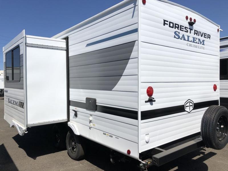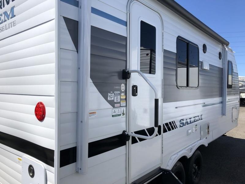 The Salem Cruise Lite travel trailers and toy haulers are value-minded units packed with great camping features! There are a variety of floorplans to choose from between two different regions. The enclosed Accessibelly will help protect against the elements and debris during transport, and the exterior retro/metal redesign is sure to be eye-catching! There are stylish roller shades inside, along with updated backsplash, elegant curtain rods and curtains, plus many more interior comforts! Choose a Salem Cruise Lite today for quality and value!