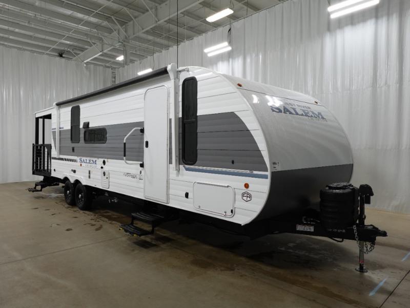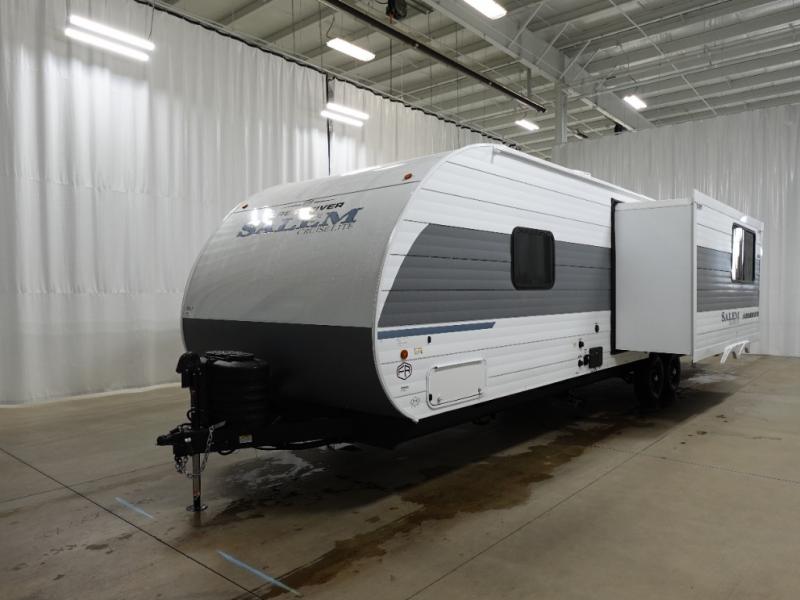 The Salem Cruise Lite travel trailers and toy haulers are value-minded units packed with great camping features! There are a variety of floorplans to choose from between two different regions. The enclosed Accessibelly will help protect against the elements and debris during transport, and the exterior retro/metal redesign is sure to be eye-catching! There are stylish roller shades inside, along with updated backsplash, elegant curtain rods and curtains, plus many more interior comforts! Choose a Salem Cruise Lite today for quality and value!