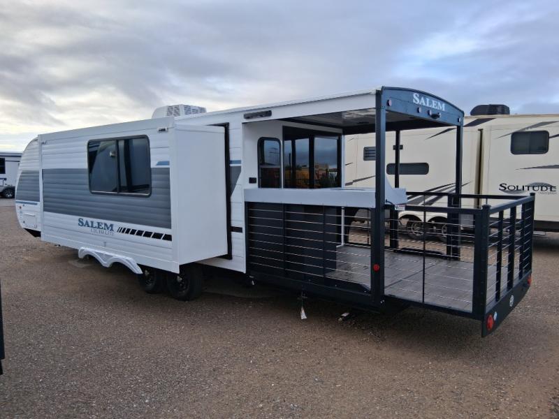 The Salem Cruise Lite travel trailers and toy haulers are value-minded units packed with great camping features! There are a variety of floorplans to choose from between three different regions. The enclosed Accessibelly will help protect against the elements and debris during transport, and the exterior retro/metal redesign is sure to be eye-catching! There are stylish roller shades inside, along with updated backsplash, elegant curtain rods and curtains, plus many more interior comforts! Choose a Salem Cruise Lite today for quality and value!
