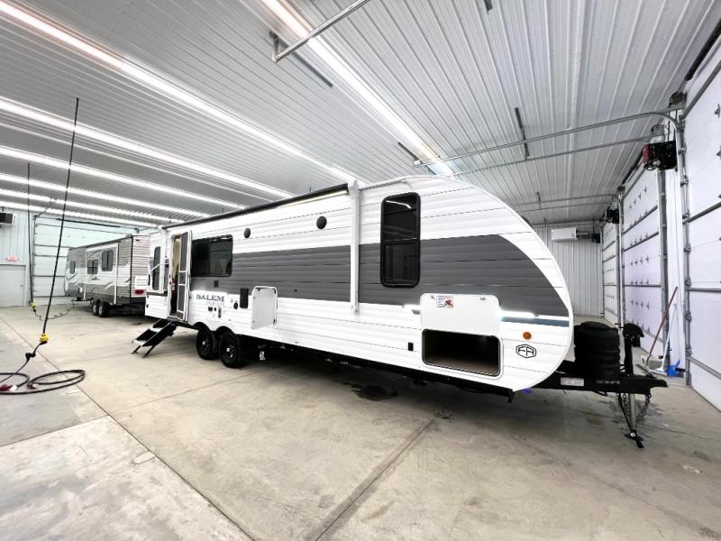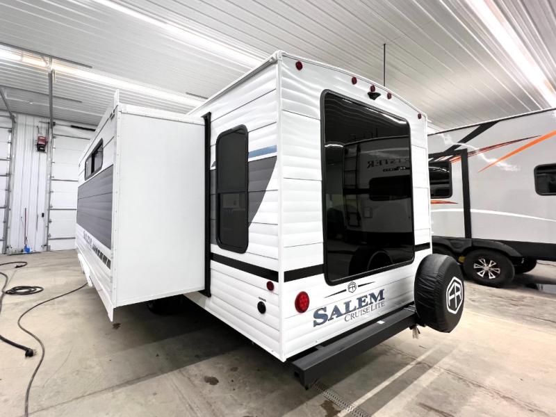 The Salem Cruise Lite travel trailers are packed with hassle-free camping amenities! There are a variety of floorplans to choose from so you can find the best one to fit your needs. The enclosed Accessibelly will help protect against the elements and debris during transport, and the exterior is sure to be eye-catching! There are stylish roller shades inside, along with updated backsplash, elegant curtain rods and curtains, plus many more interior comforts! Choose a Salem Cruise Lite travel trailer today for quality and value!