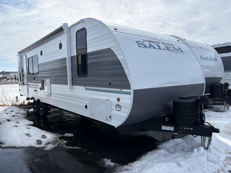 The Salem Cruise Lite travel trailers are packed with hassle-free camping amenities! There are a variety of floorplans to choose from so you can find the best one to fit your needs. The enclosed Accessibelly will help protect against the elements and debris during transport, and the exterior is sure to be eye-catching! There are stylish roller shades inside, along with updated backsplash, elegant curtain rods and curtains, plus many more interior comforts! Choose a Salem Cruise Lite travel trailer today for quality and value!