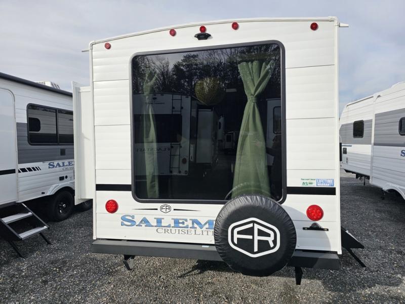 The Salem Cruise Lite travel trailers are packed with hassle-free camping amenities! There are a variety of floorplans to choose from so you can find the best one to fit your needs. The enclosed Accessibelly will help protect against the elements and debris during transport, and the exterior is sure to be eye-catching! There are stylish roller shades inside, along with updated backsplash, elegant curtain rods and curtains, plus many more interior comforts! Choose a Salem Cruise Lite travel trailer today for quality and value!