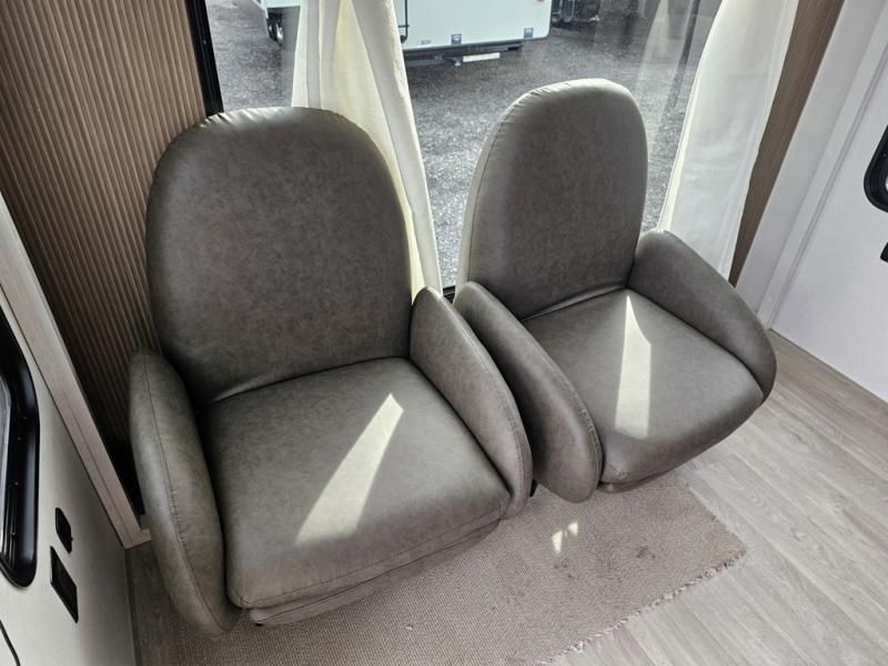 Comfort comes easy in this spacious travel trailer for three to four! The rear living area includes dual lounge chairs and a picture window so you can sit with your coffee and book in the morning. Once the chef of your crew has made breakfast in the fully equipped kitchen, you can dine at the booth dinette or take your plate outdoors under the awning. There is also a Versa-Lounge beside the dinette for more seating spaces. An entertainment center with a fireplace will make your space cozier, and you'll appreciate the hidden pantry behind for dry goods, movies, games and more! The walk-thru bath leads to the master bedroom where you'll find a walk-around Versa-Tilt custom king bed, a bedroom closet, and overhead storage so everything has a place!