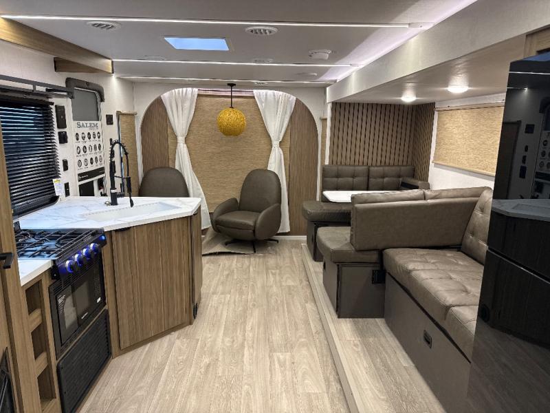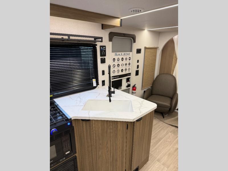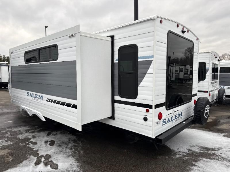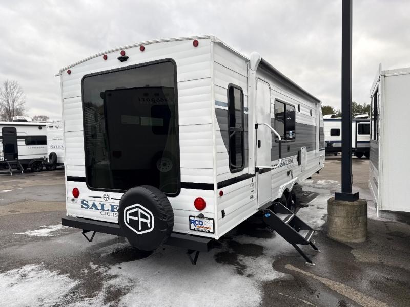 The Salem Cruise Lite travel trailers are packed with hassle-free camping amenities! There are a variety of floorplans to choose from so you can find the best one to fit your needs. The enclosed Accessibelly will help protect against the elements and debris during transport, and the exterior is sure to be eye-catching! There are stylish roller shades inside, along with updated backsplash, elegant curtain rods and curtains, plus many more interior comforts! Choose a Salem Cruise Lite travel trailer today for quality and value!