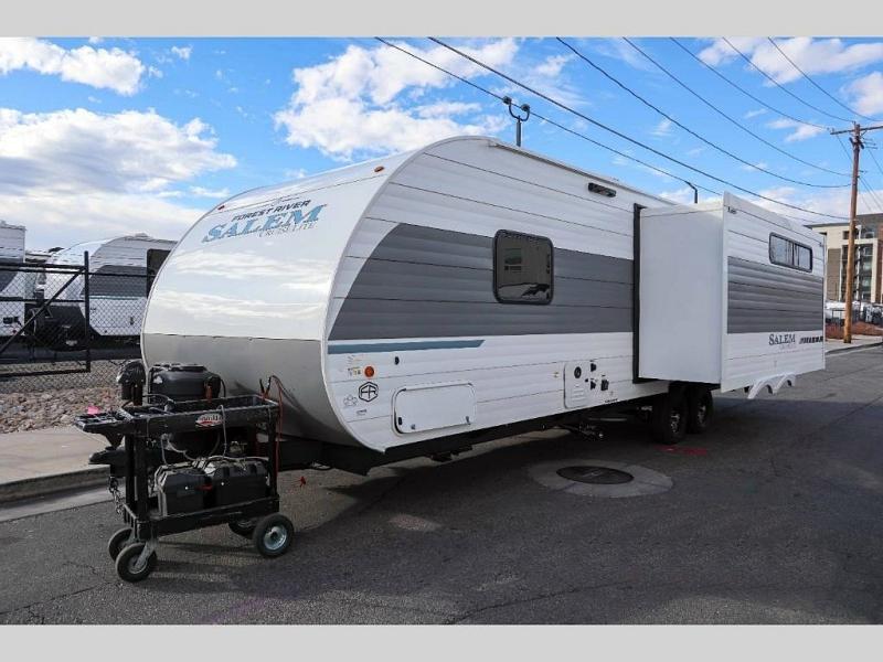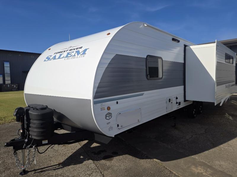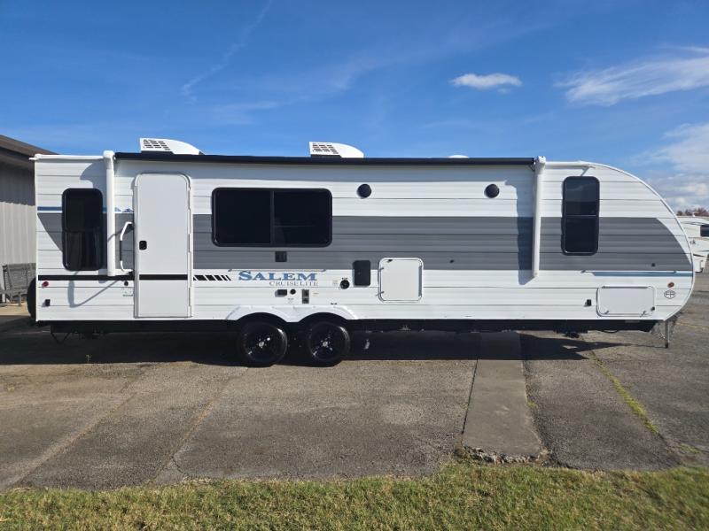 The Salem Cruise Lite travel trailers are packed with hassle-free camping amenities! There are a variety of floorplans to choose from so you can find the best one to fit your needs. The enclosed Accessibelly will help protect against the elements and debris during transport, and the exterior is sure to be eye-catching! There are stylish roller shades inside, along with updated backsplash, elegant curtain rods and curtains, plus many more interior comforts! Choose a Salem Cruise Lite travel trailer today for quality and value!