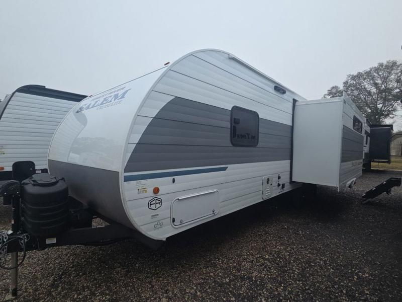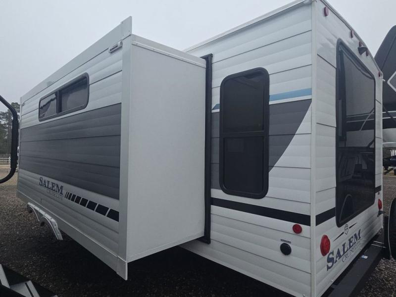 The Salem Cruise Lite travel trailers are packed with hassle-free camping amenities! There are a variety of floorplans to choose from so you can find the best one to fit your needs. The enclosed Accessibelly will help protect against the elements and debris during transport, and the exterior is sure to be eye-catching! There are stylish roller shades inside, along with updated backsplash, elegant curtain rods and curtains, plus many more interior comforts! Choose a Salem Cruise Lite travel trailer today for quality and value!