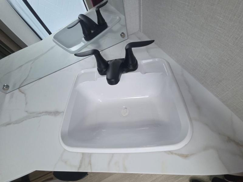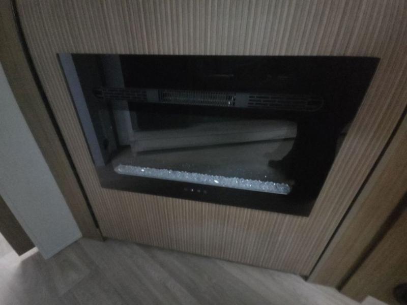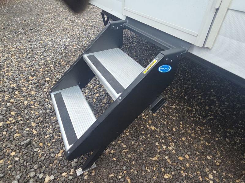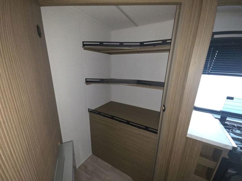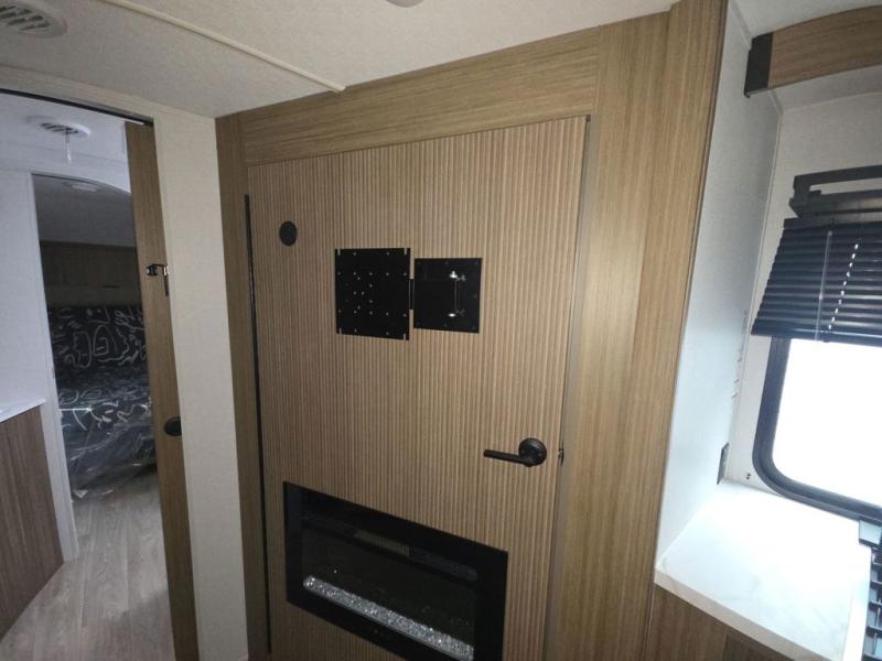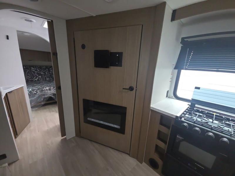 Comfort comes easy in this spacious travel trailer for three to four! The rear living area includes dual lounge chairs and a picture window so you can sit with your coffee and book in the morning. Once the chef of your crew has made breakfast in the fully equipped kitchen, you can dine at the booth dinette or take your plate outdoors under the awning. There is also a Versa-Lounge beside the dinette for more seating spaces. An entertainment center with a fireplace will make your space cozier, and you'll appreciate the hidden pantry behind for dry goods, movies, games and more! The walk-thru bath leads to the master bedroom where you'll find a walk-around Versa-Tilt custom king bed, a bedroom closet, and overhead storage so everything has a place!