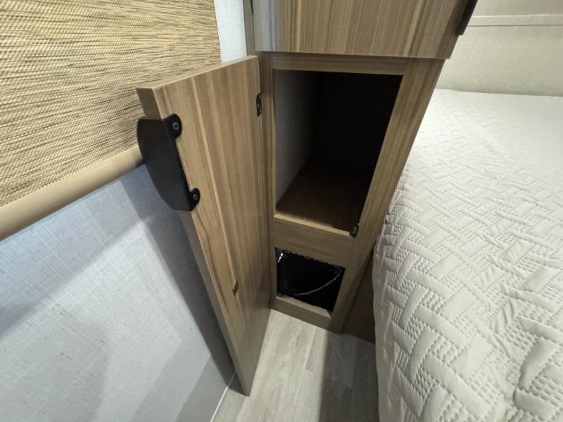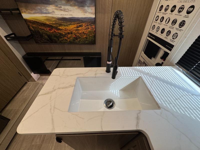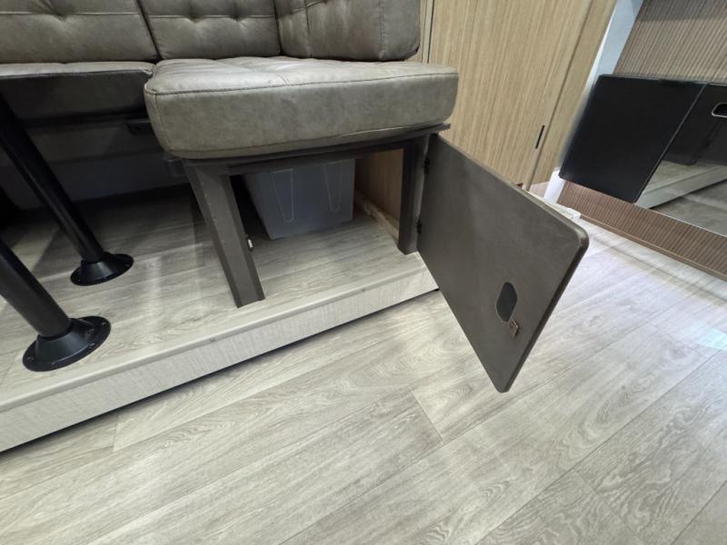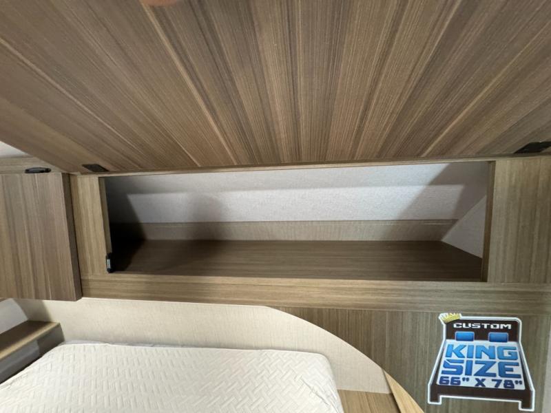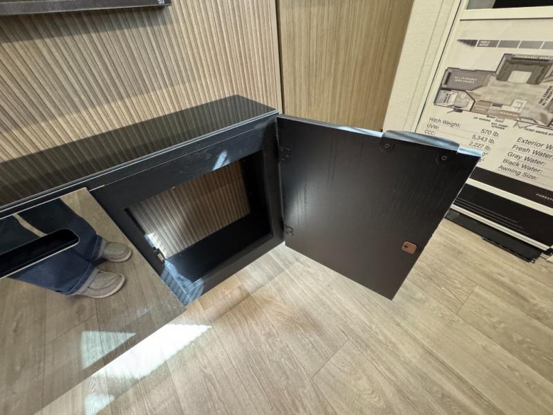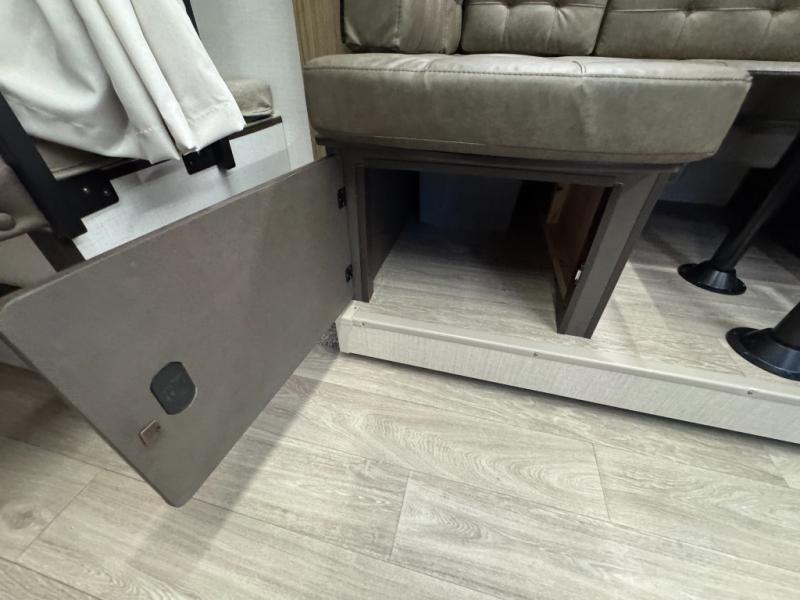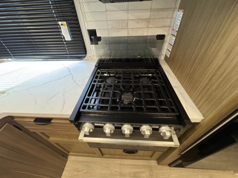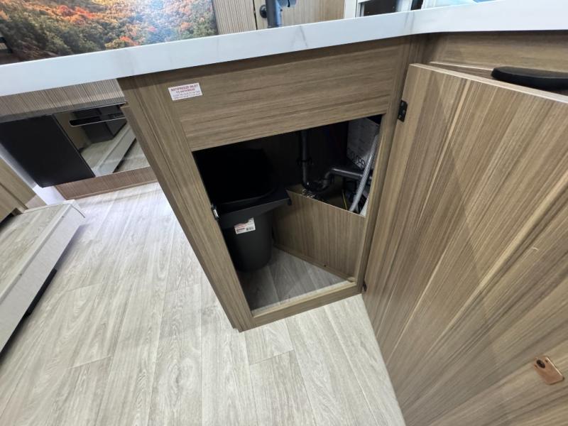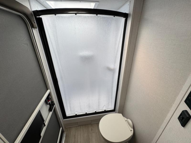 This travel trailer is big enough for the whole family to join in on the fun and weighs in at less than 6,000 lbs.! The kiddos can sleep on the corner 46" 74" double-size bunk beds, and you can sleep on the Versa Tilt custom king bed inside the front private bedroom, plus the U-shaped dinette can transform into an extra sleeping space. It also has a panoramic window for you to look out at your beautiful scenery while you eat. The rear corner bathroom has everything you will need to get squeaky clean each morning, as well as an exit/entrance door to the unit. The oversized refrigerator will keep your perishables fresh and the cooktop is just waiting for you to create a delicious meal. There is also a walk-in pantry for canned goods and an outside kitchen for the cook to enjoy!