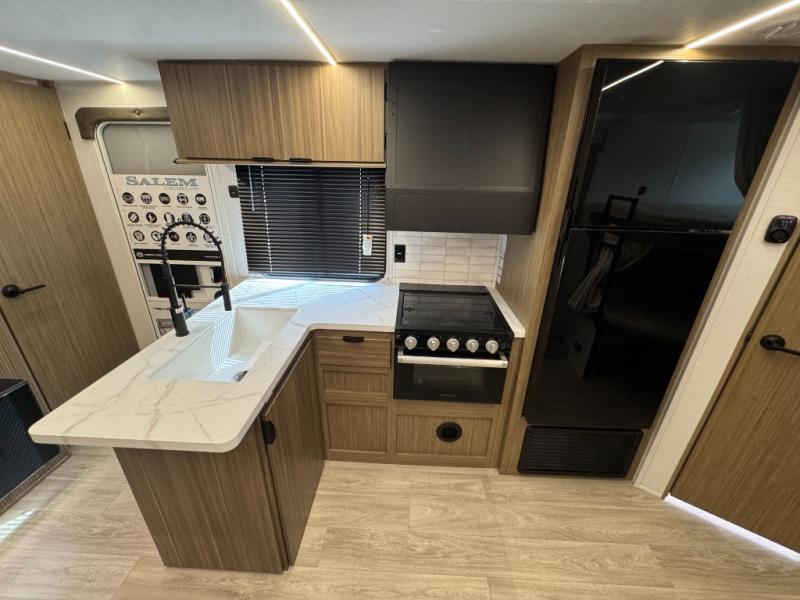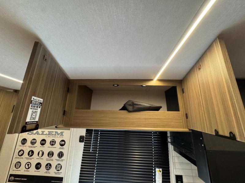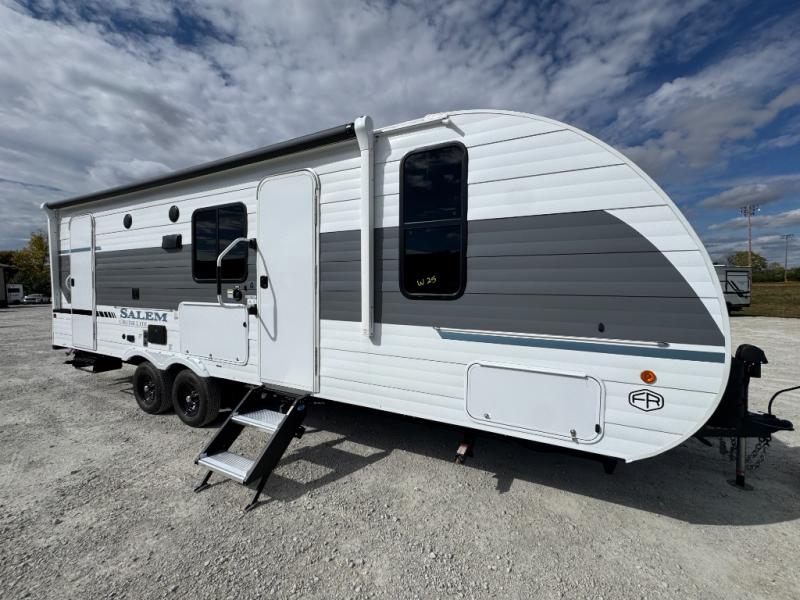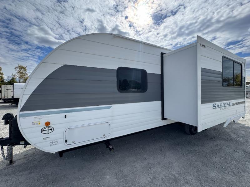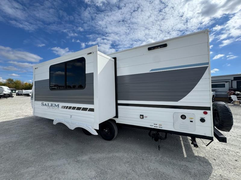 The Salem Cruise Lite travel trailers and toy haulers are value-minded units packed with great camping features! There are a variety of floorplans to choose from between two different regions. The enclosed Accessibelly will help protect against the elements and debris during transport, and the exterior retro/metal redesign is sure to be eye-catching! There are stylish roller shades inside, along with updated backsplash, elegant curtain rods and curtains, plus many more interior comforts! Choose a Salem Cruise Lite today for quality and value!