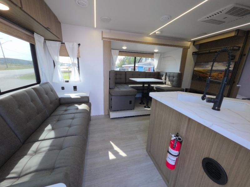 This travel trailer is packed full of features, but is still lightweight coming in at just over 5,000 lbs.! You will feel right at home in the front master bedroom with a custom king bed with Versa Tilt and a closet to keep your clothes tidy. The walk-through bathroom has a walk-in shower with fiberglass surround and a skylight above for added natural lighting as you get ready. The U-shaped dinette slide has a panoramic window for you to enjoy your beautiful scenery as you eat dinner, and there is a fireplace at the entertainment center for a relaxing evening indoors. There is a pass-through storage area to store your outdoor camping gear, and a 16' awning will provide shade as you're visiting outdoors.