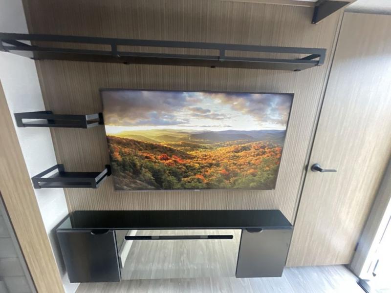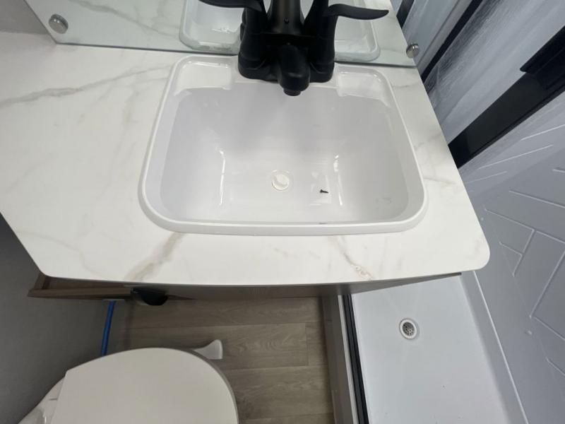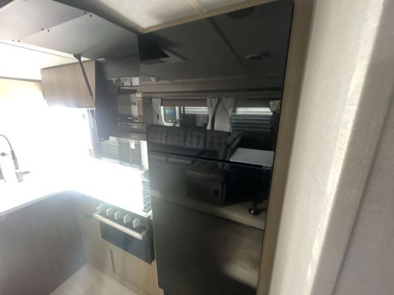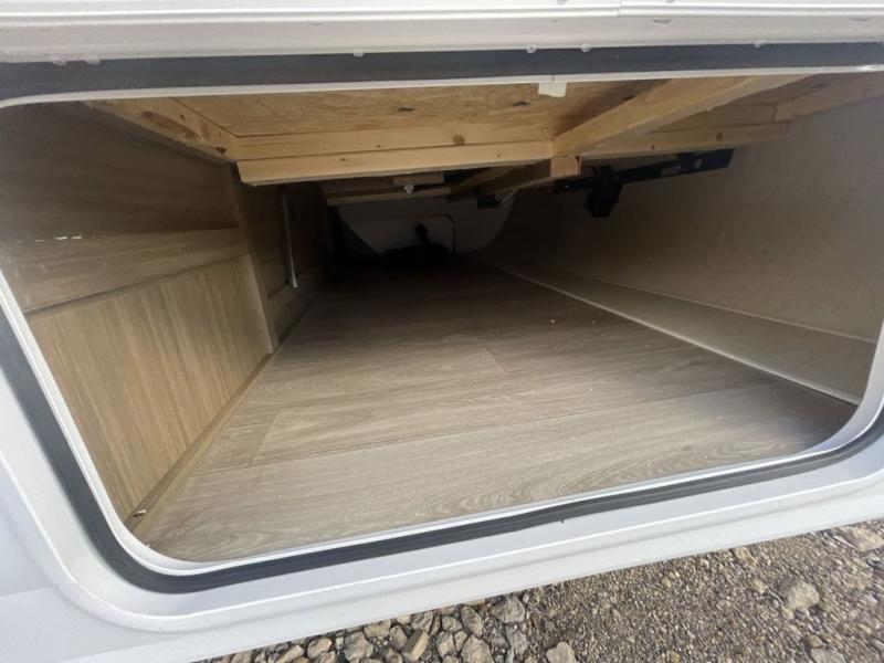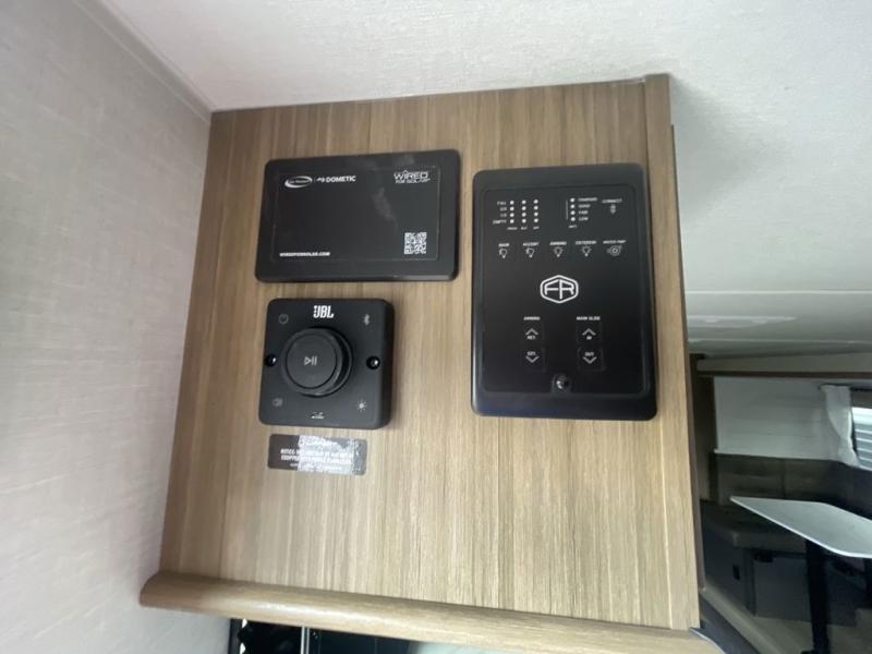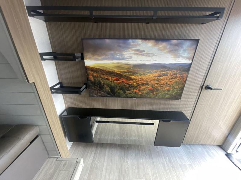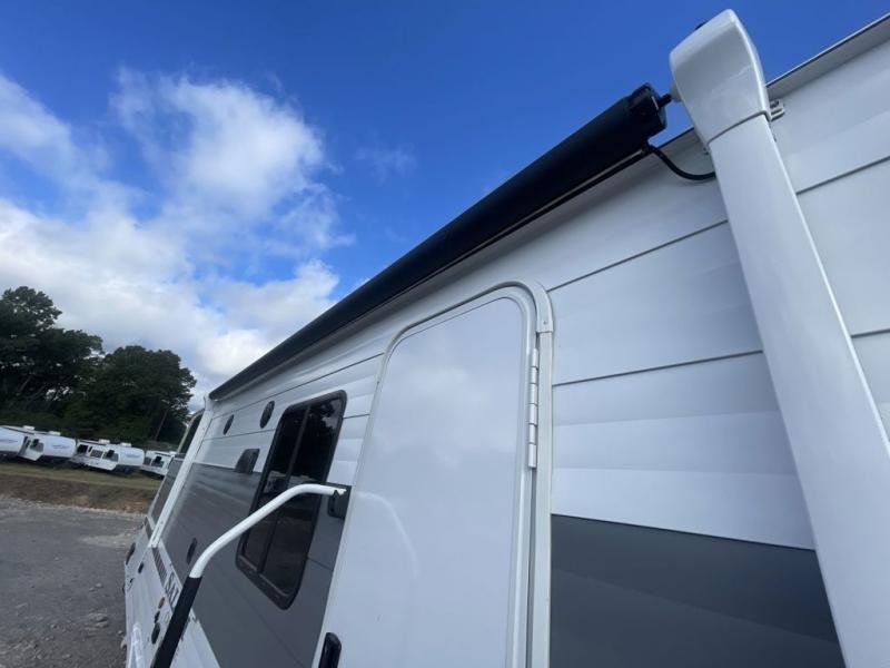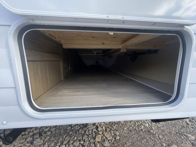 This travel trailer is packed full of features, but is still lightweight coming in at just over 5,000 lbs.! You will feel right at home in the front master bedroom with a custom king bed with Versa Tilt and a closet to keep your clothes tidy. The walk-through bathroom has a walk-in shower with fiberglass surround and a skylight above for added natural lighting as you get ready. The U-shaped dinette slide has a panoramic window for you to enjoy your beautiful scenery as you eat dinner, and there is a fireplace at the entertainment center for a relaxing evening indoors. There is a pass-through storage area to store your outdoor camping gear, and a 16' awning will provide shade as you're visiting outdoors.