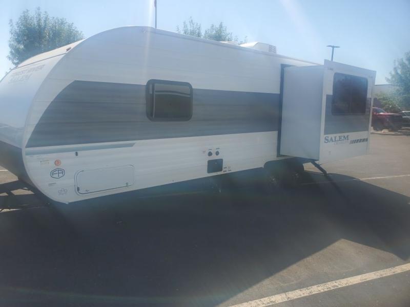 The Salem Cruise Lite travel trailers and toy haulers are value-minded units packed with great camping features! There are a variety of floorplans to choose from between two different regions. The enclosed Accessibelly will help protect against the elements and debris during transport, and the exterior retro/metal redesign is sure to be eye-catching! There are stylish roller shades inside, along with updated backsplash, elegant curtain rods and curtains, plus many more interior comforts! Choose a Salem Cruise Lite today for quality and value!
