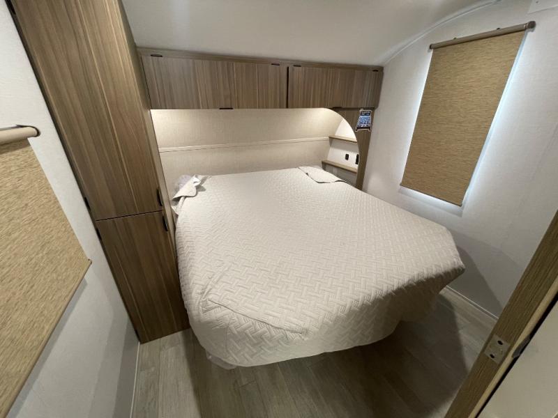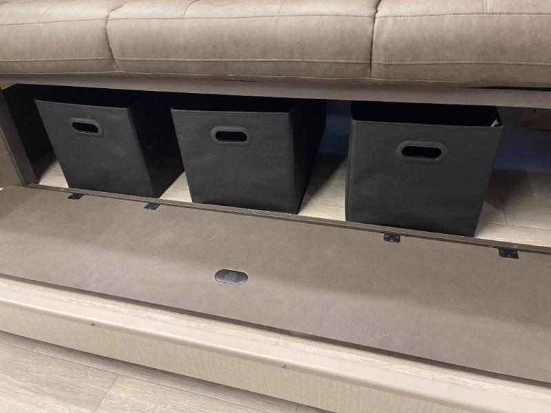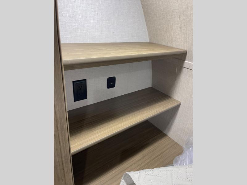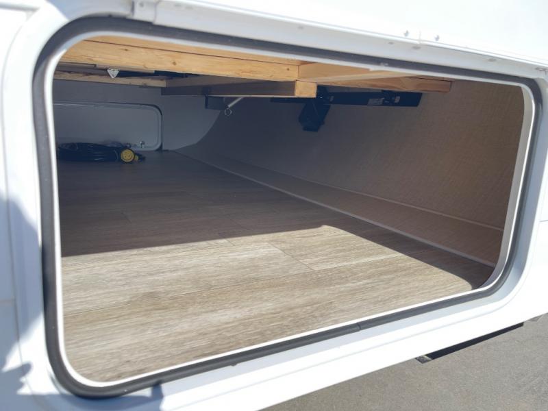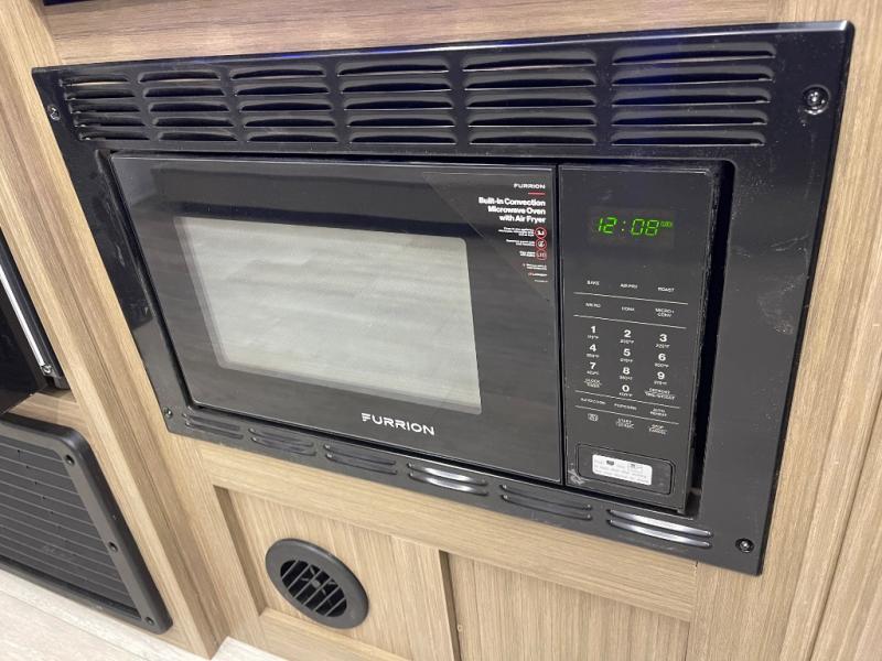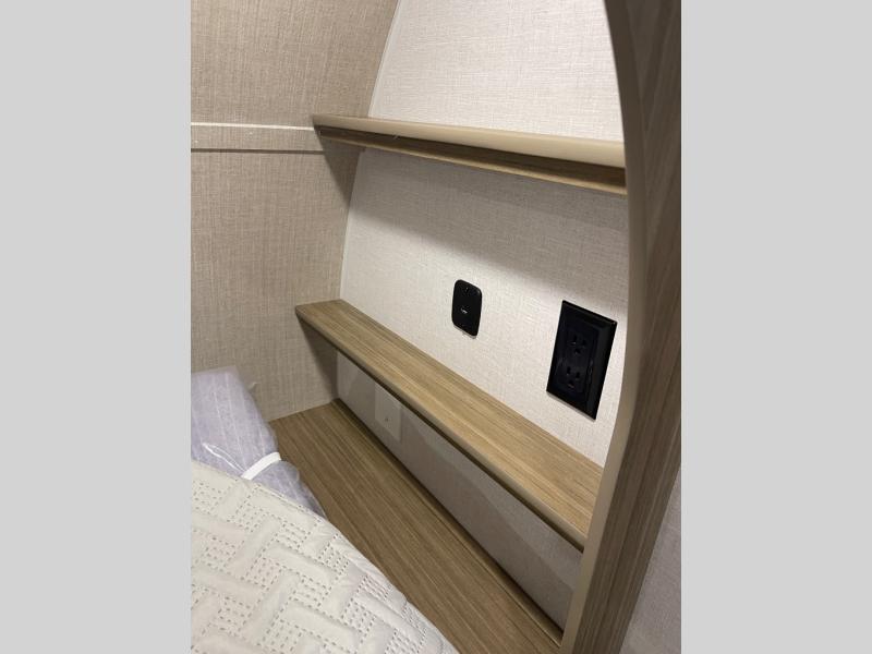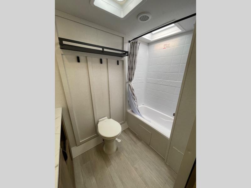 You're sure to make camping memories in this spacious travel trailer! You can sleep four to five people each night thanks to the the custom king bed with Versa Tilt in the front bedroom plus the Versa-Lounge and booth dinette within the large slide out! The full kitchen will let you make meals each day, and you'll appreciate the hidden pantry with shelves behind the fireplace. And don't overlook the full rear bath, complete with a tub/shower and ample counter space for your things.