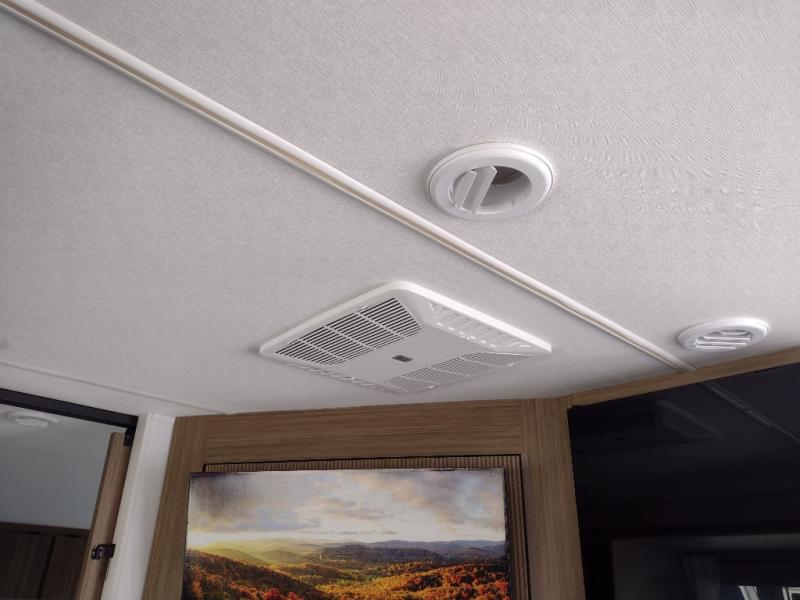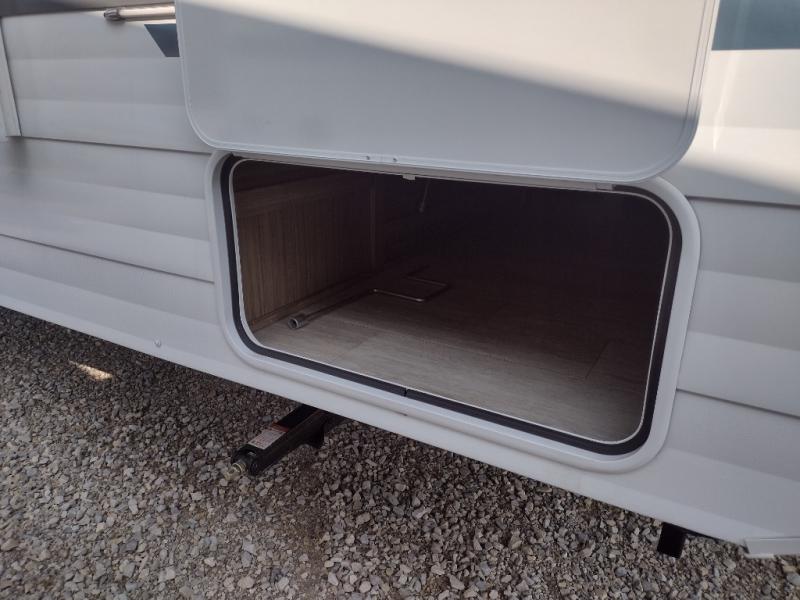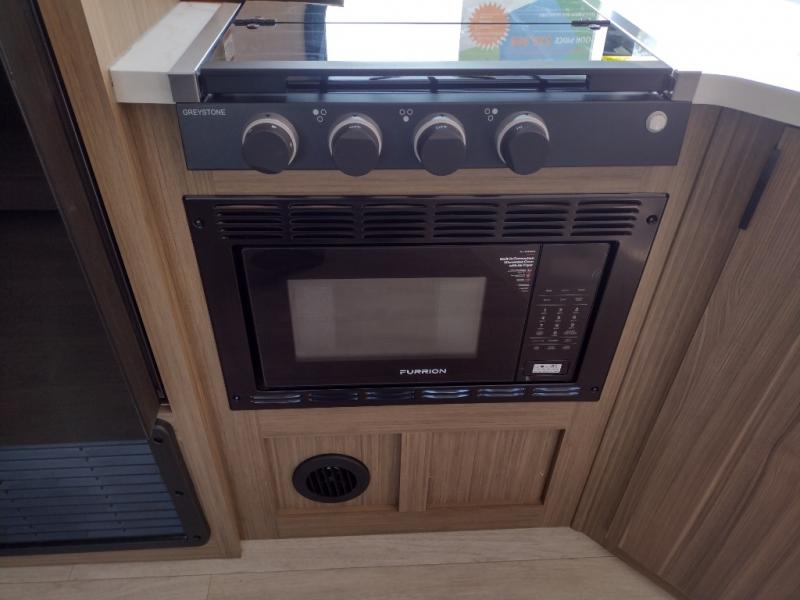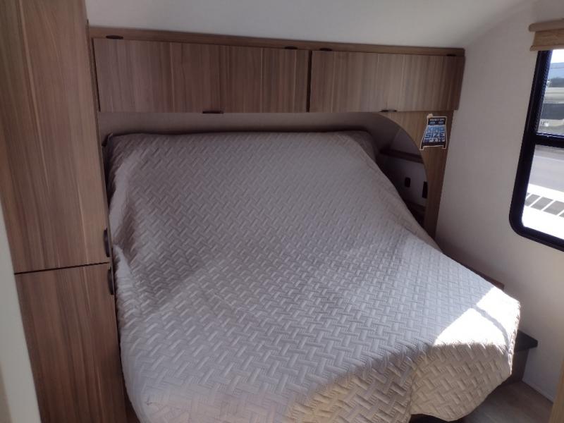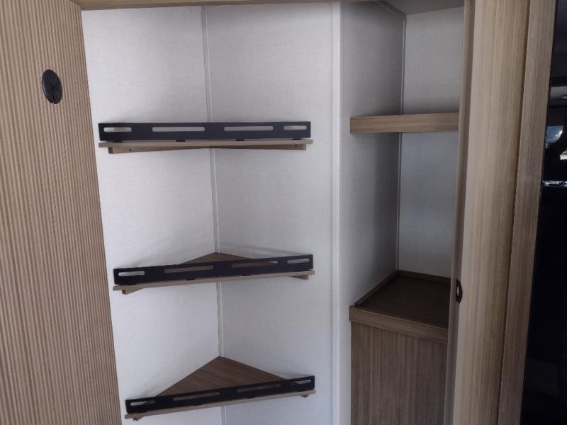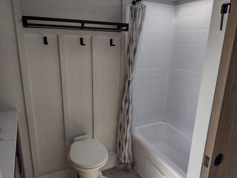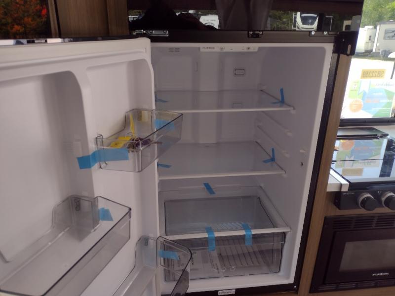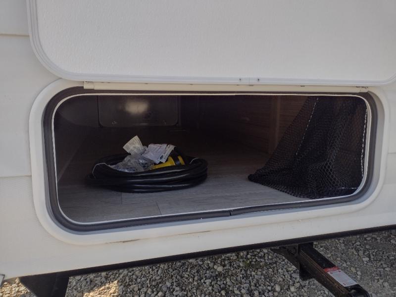 You're sure to make camping memories in this spacious travel trailer! You can sleep four to five people each night thanks to the the custom king bed with Versa Tilt in the front bedroom plus the Versa-Lounge and booth dinette within the large slide out! The full kitchen will let you make meals each day, and you'll appreciate the hidden pantry with shelves behind the fireplace. And don't overlook the full rear bath, complete with a tub/shower and ample counter space for your things.