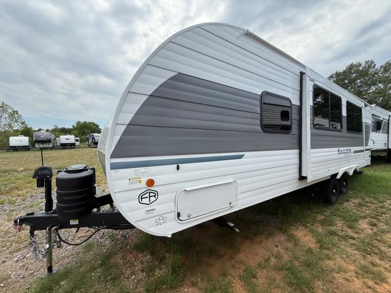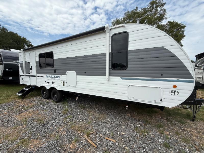 The Salem Cruise Lite travel trailers and toy haulers are value-minded units packed with great camping features! There are a variety of floorplans to choose from between two different regions. The enclosed Accessibelly will help protect against the elements and debris during transport, and the exterior retro/metal redesign is sure to be eye-catching! There are stylish roller shades inside, along with updated backsplash, elegant curtain rods and curtains, plus many more interior comforts! Choose a Salem Cruise Lite today for quality and value!
