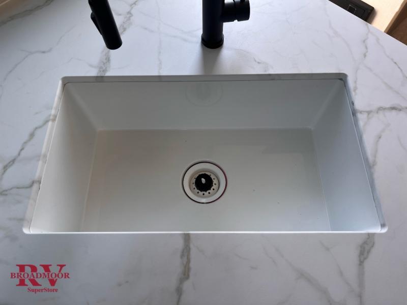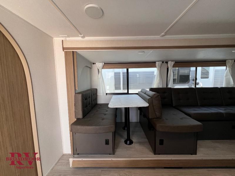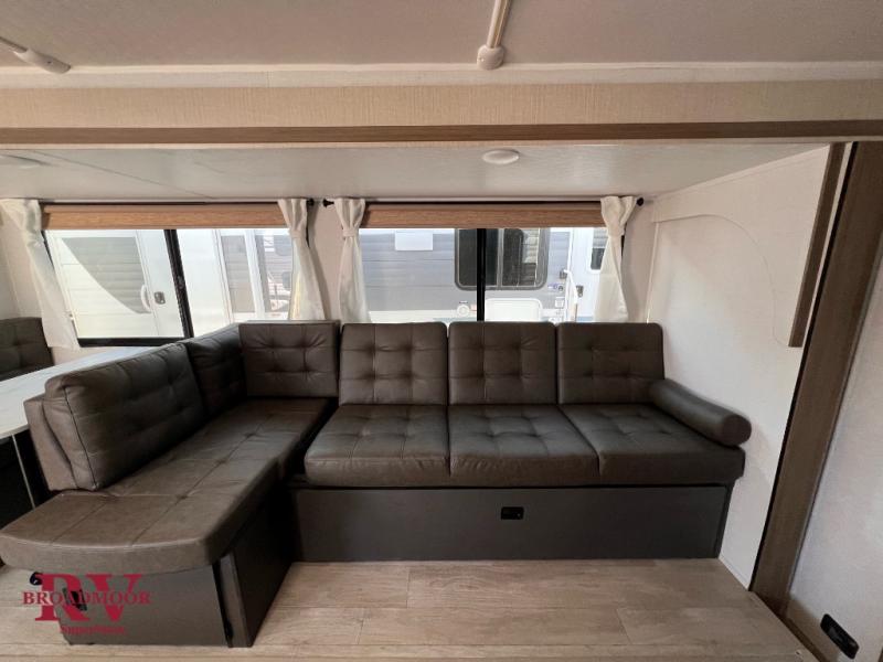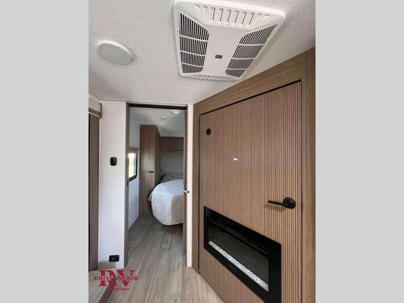 You're sure to make camping memories in this spacious travel trailer! You can sleep four to five people each night thanks to the the custom king bed with Versa Tilt in the front bedroom plus the Versa-Lounge and booth dinette within the large slide out! The full kitchen will let you make meals each day, and you'll appreciate the hidden pantry with shelves behind the fireplace. And don't overlook the full rear bath, complete with a tub/shower and ample counter space for your things.