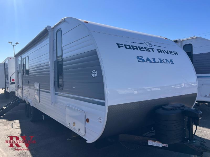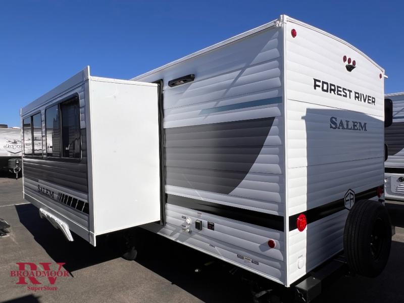 The Salem Cruise Lite travel trailers and toy haulers are value-minded units packed with great camping features! There are a variety of floorplans to choose from between two different regions. The enclosed Accessibelly will help protect against the elements and debris during transport, and the exterior retro/metal redesign is sure to be eye-catching! There are stylish roller shades inside, along with updated backsplash, elegant curtain rods and curtains, plus many more interior comforts! Choose a Salem Cruise Lite today for quality and value!