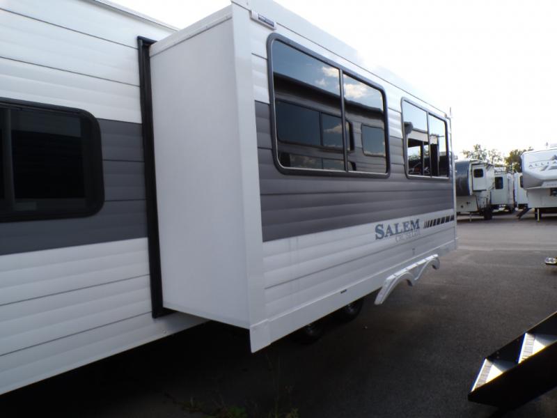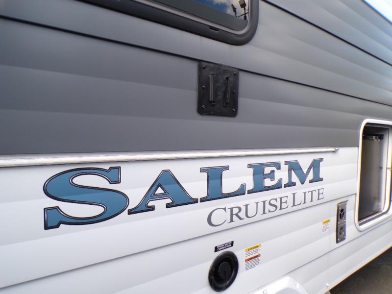 The Salem Cruise Lite travel trailers and toy haulers are value-minded units packed with great camping features! There are a variety of floorplans to choose from between two different regions. The enclosed Accessibelly will help protect against the elements and debris during transport, and the exterior retro/metal redesign is sure to be eye-catching! There are stylish roller shades inside, along with updated backsplash, elegant curtain rods and curtains, plus many more interior comforts! Choose a Salem Cruise Lite today for quality and value!