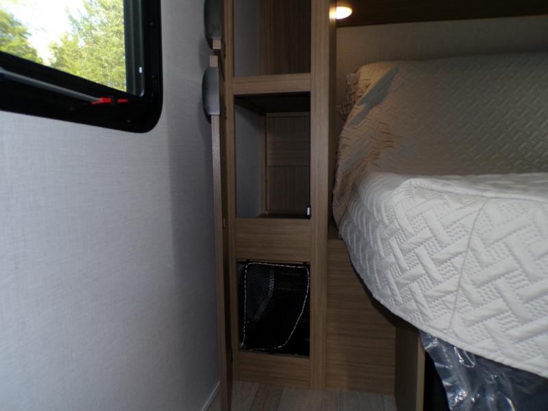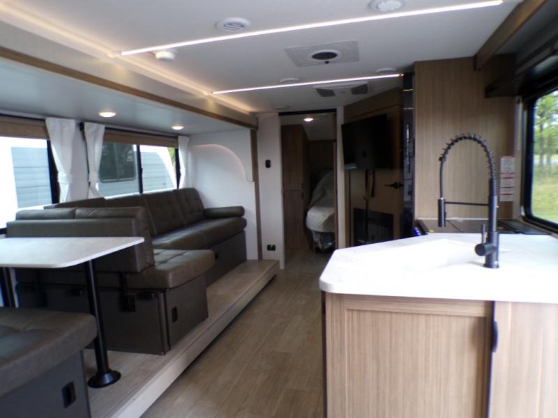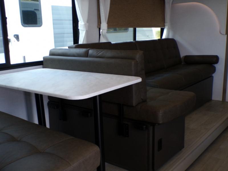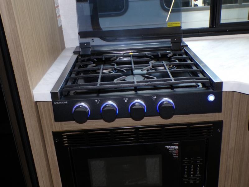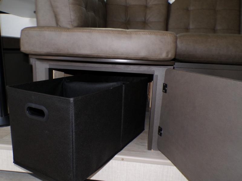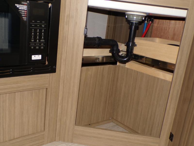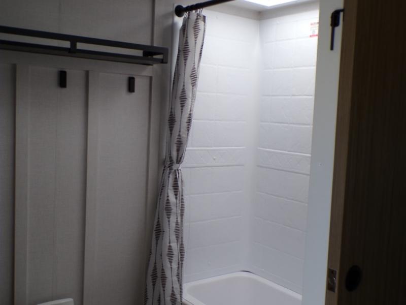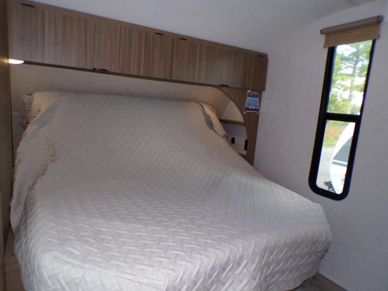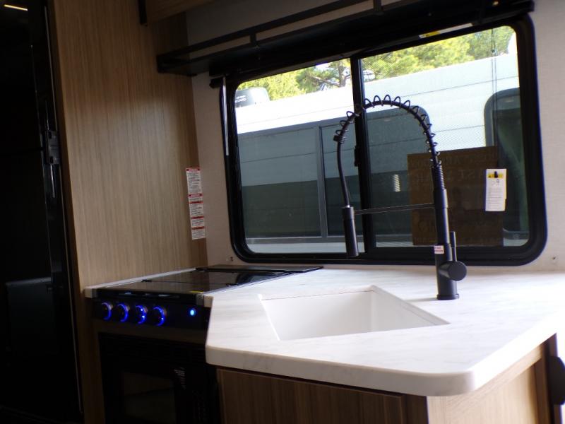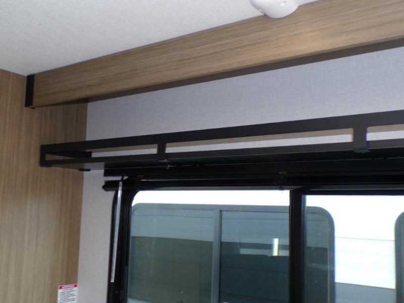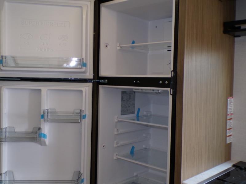 You're sure to make camping memories in this spacious travel trailer! You can sleep four to five people each night thanks to the the custom king bed with Versa Tilt in the front bedroom plus the Versa-Lounge and booth dinette within the large slide out! The full kitchen will let you make meals each day, and you'll appreciate the hidden pantry with shelves behind the fireplace. And don't overlook the full rear bath, complete with a tub/shower and ample counter space for your things.