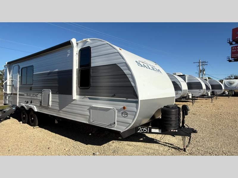 The Salem Cruise Lite travel trailers and toy haulers are value-minded units packed with great camping features! There are a variety of floorplans to choose from between two different regions. The enclosed Accessibelly will help protect against the elements and debris during transport, and the exterior retro/metal redesign is sure to be eye-catching! There are stylish roller shades inside, along with updated backsplash, elegant curtain rods and curtains, plus many more interior comforts! Choose a Salem Cruise Lite today for quality and value!