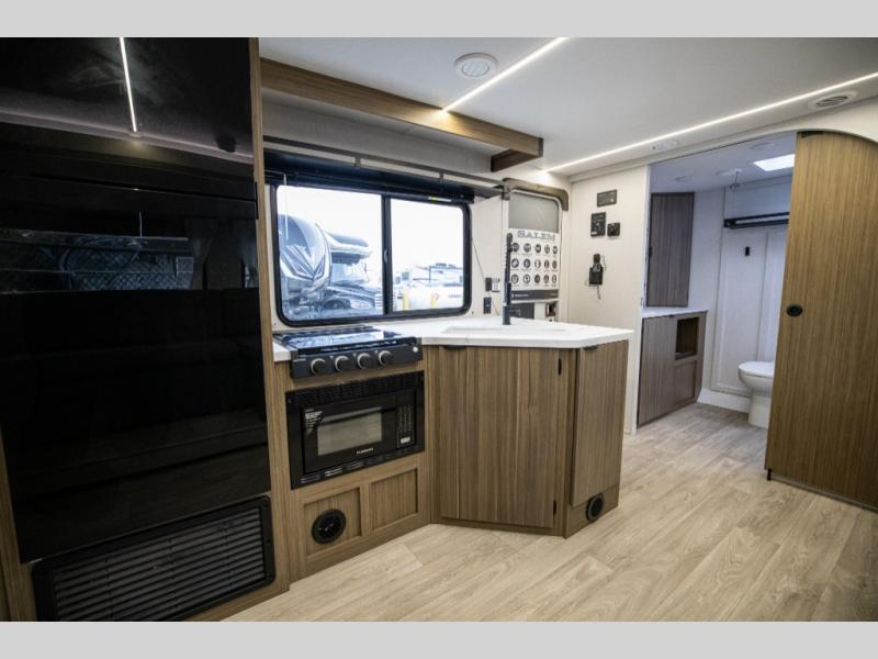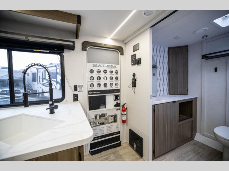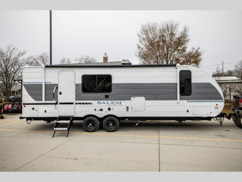 The Salem Cruise Lite travel trailers and toy haulers are value-minded units packed with great camping features! There are a variety of floorplans to choose from between two different regions. The enclosed Accessibelly will help protect against the elements and debris during transport, and the exterior retro/metal redesign is sure to be eye-catching! There are stylish roller shades inside, along with updated backsplash, elegant curtain rods and curtains, plus many more interior comforts! Choose a Salem Cruise Lite today for quality and value!