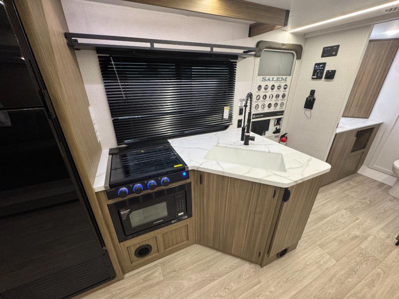 The Salem Cruise Lite travel trailers are packed with hassle-free camping amenities! There are a variety of floorplans to choose from so you can find the best one to fit your needs. The enclosed Accessibelly will help protect against the elements and debris during transport, and the exterior is sure to be eye-catching! There are stylish roller shades inside, along with updated backsplash, elegant curtain rods and curtains, plus many more interior comforts! Choose a Salem Cruise Lite travel trailer today for quality and value!