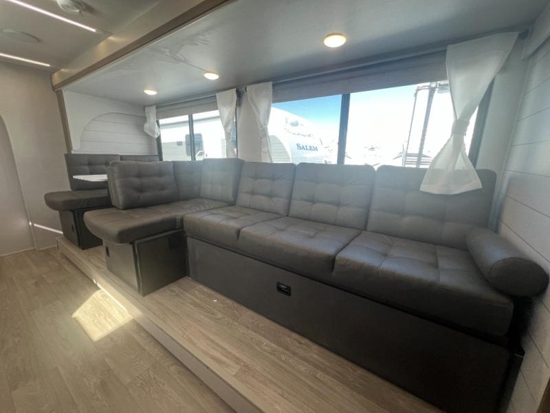 The Salem Cruise Lite travel trailers are packed with hassle-free camping amenities! There are a variety of floorplans to choose from so you can find the best one to fit your needs. The enclosed Accessibelly will help protect against the elements and debris during transport, and the exterior is sure to be eye-catching! There are stylish roller shades inside, along with updated backsplash, elegant curtain rods and curtains, plus many more interior comforts! Choose a Salem Cruise Lite travel trailer today for quality and value!
