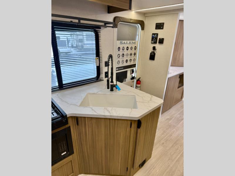 The Salem Cruise Lite travel trailers are packed with hassle-free camping amenities! There are a variety of floorplans to choose from so you can find the best one to fit your needs. The enclosed Accessibelly will help protect against the elements and debris during transport, and the exterior is sure to be eye-catching! There are stylish roller shades inside, along with updated backsplash, elegant curtain rods and curtains, plus many more interior comforts! Choose a Salem Cruise Lite travel trailer today for quality and value!