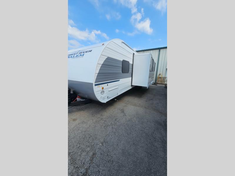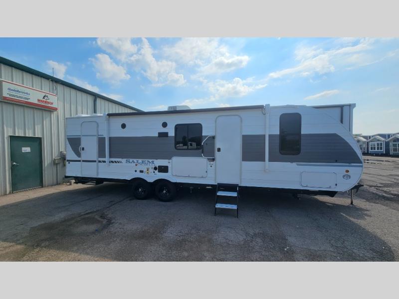 The Salem Cruise Lite travel trailers and toy haulers are value-minded units packed with great camping features! There are a variety of floorplans to choose from between two different regions. The enclosed Accessibelly will help protect against the elements and debris during transport, and the exterior retro/metal redesign is sure to be eye-catching! There are stylish roller shades inside, along with updated backsplash, elegant curtain rods and curtains, plus many more interior comforts! Choose a Salem Cruise Lite today for quality and value!