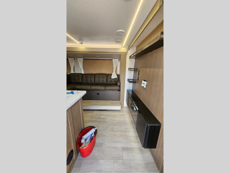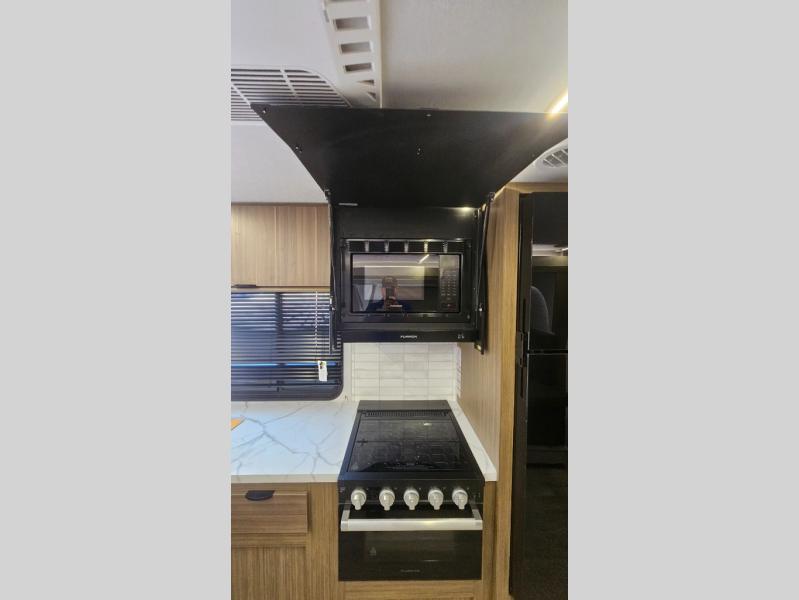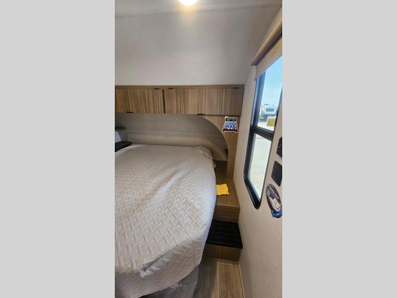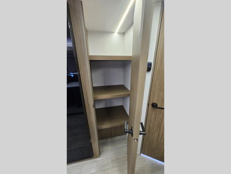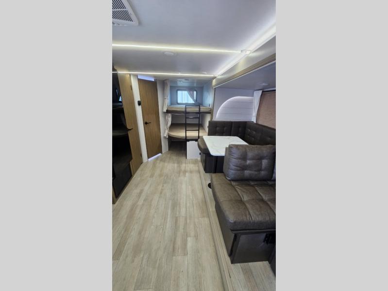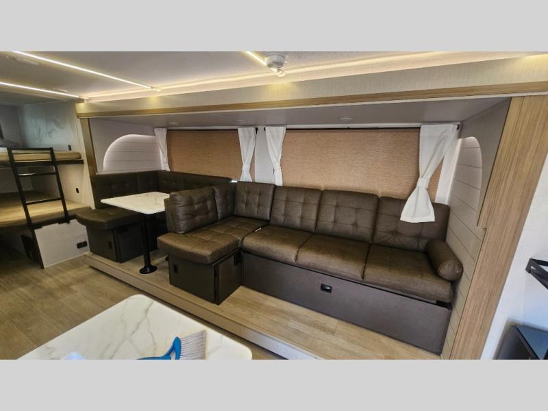 If you're looking for a travel trailer that will meet your family's needs then this one is for you! The kiddos will enjoy a good night's rest on the rear corner double-size bunk beds and you will enjoy a good night's rest on the custom king bed with Versa Tilt inside the front private bedroom. You can also transform the U-shaped dinette and Versa-lounge into extra sleeping spaces. One of the dual entrances leads directly into the rear corner bathroom which has a walk-in shower for you to get squeaky clean each morning. The walk-in pantry is big enough to store your favorite snacks and the oversized refrigerator will keep your beverages nice and cold. There is also an exterior camp kitchen you are sure to love!