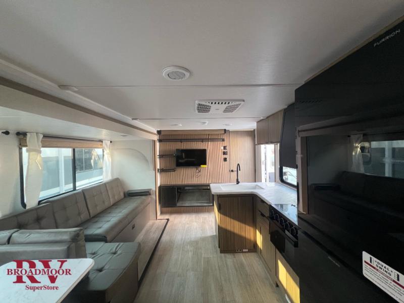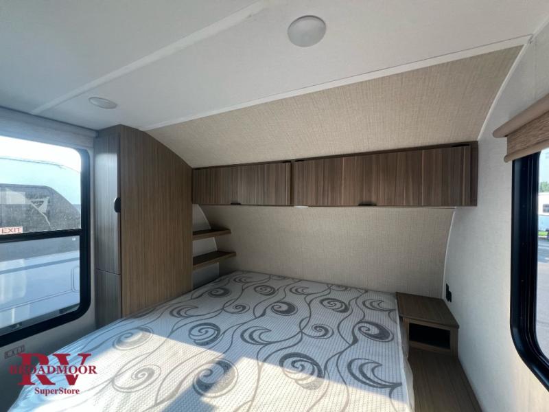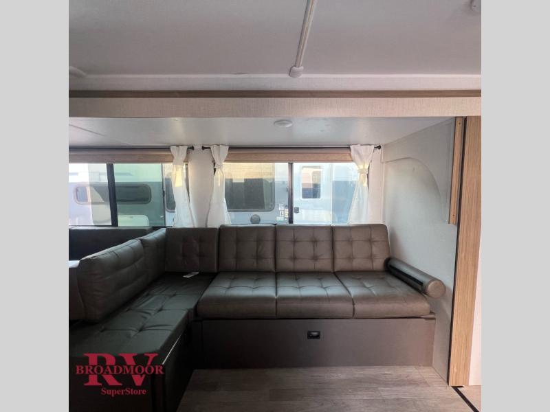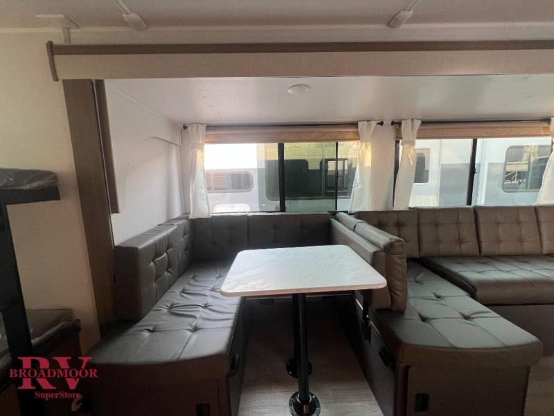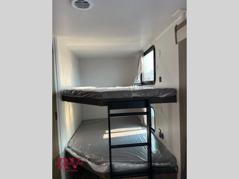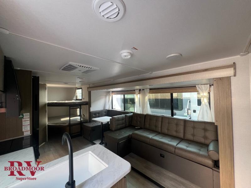 Step inside this dual entry travel trailer and see just how fun your next camping trip will be! The rear corner bathroom has a shower for you to start each morning feeling clean and fresh, and it even has an entrance/exit door to the unit so you can get back outside faster. The kids will love sleeping on the corner bunk beds and you will love having your own privacy with the front private bedroom. The Versa Lounge is next to the entertainment center with a fireplace for a relaxing evening indoors, and the U-shaped dinette is ready for you to enjoy a meal, play a card game or transform into an extra sleeping space.