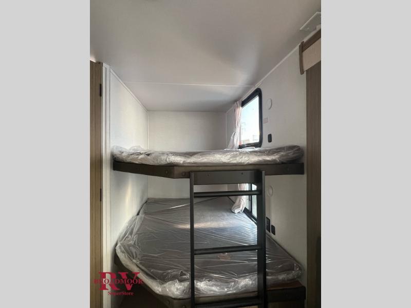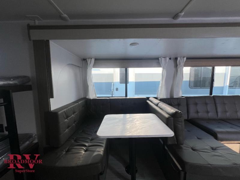 Step inside this dual entry travel trailer and see just how fun your next camping trip will be! The rear corner bathroom has a shower for you to start each morning feeling clean and fresh, and it even has an entrance/exit door to the unit so you can get back outside faster. The kids will love sleeping on the corner bunk beds and you will love having your own privacy with the front private bedroom. The Versa Lounge is next to the entertainment center with a fireplace for a relaxing evening indoors, and the U-shaped dinette is ready for you to enjoy a meal, play a card game or transform into an extra sleeping space.