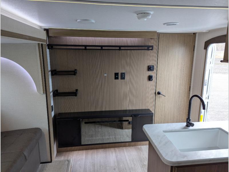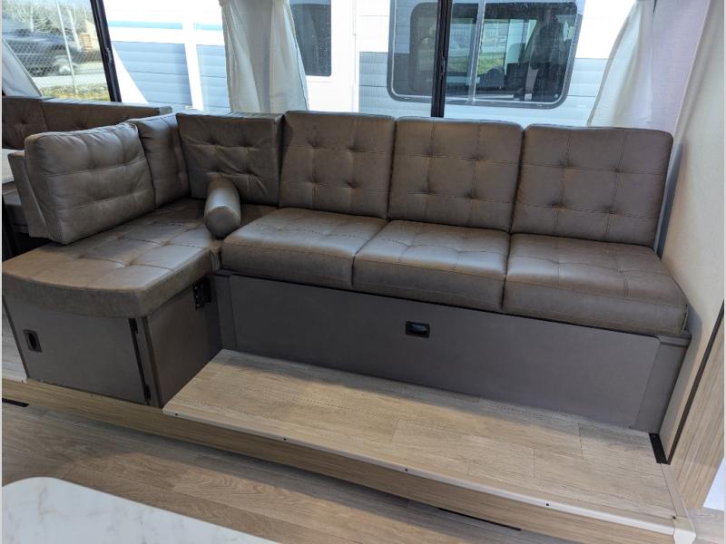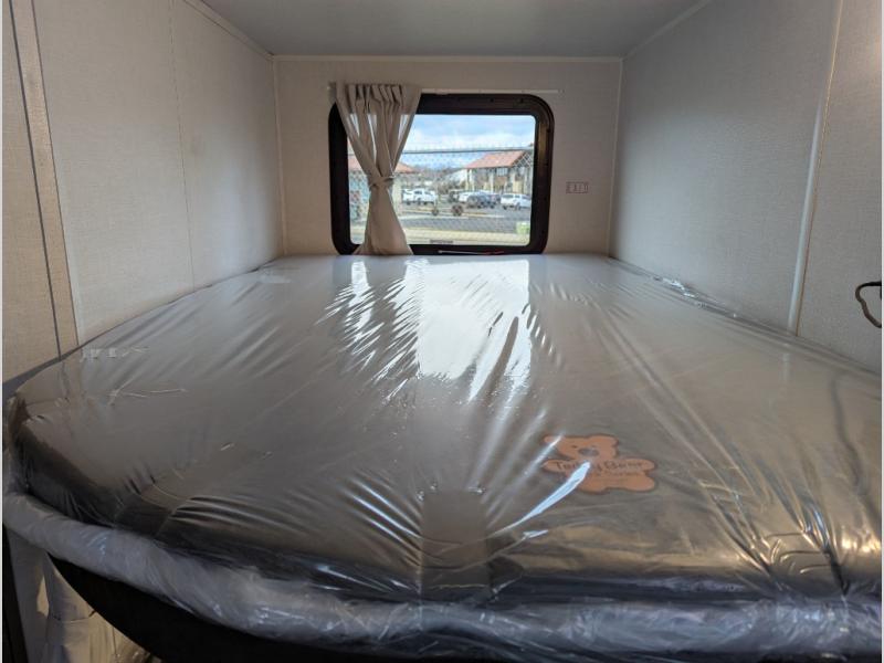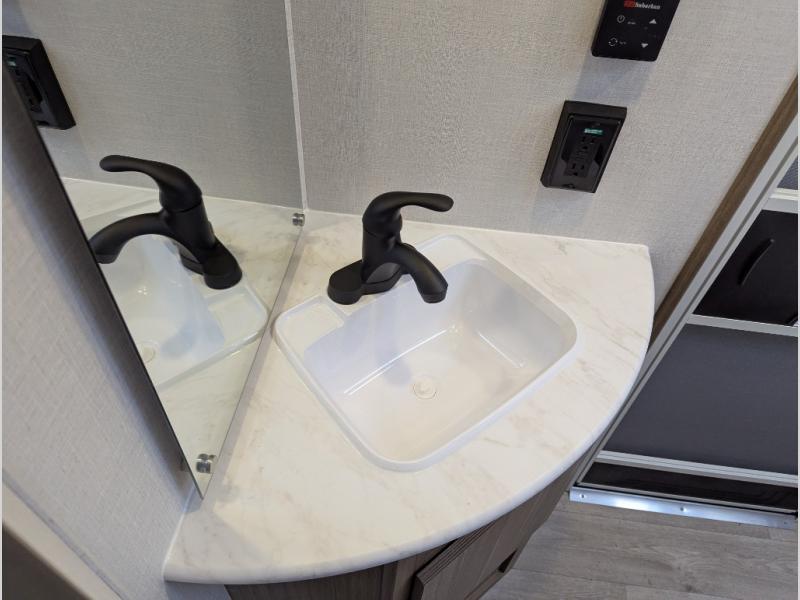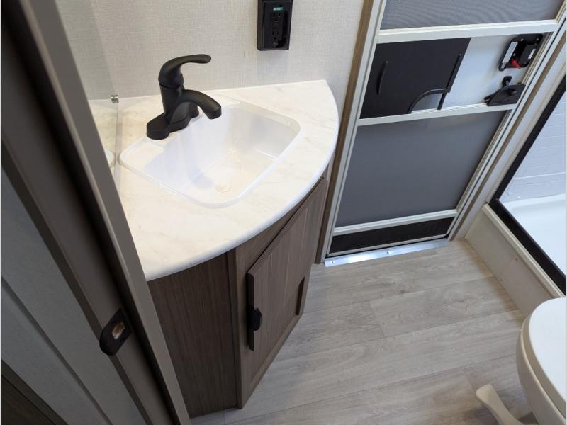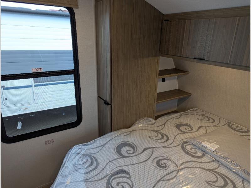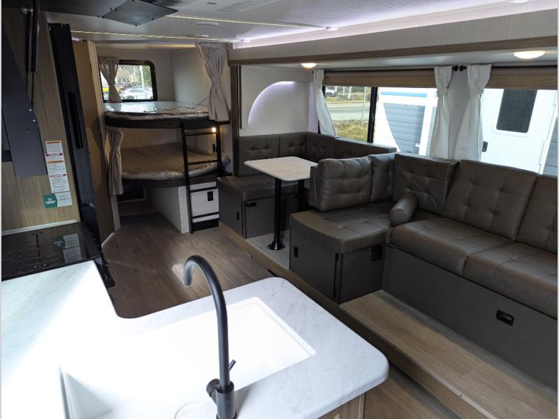 Step inside this dual entry travel trailer and see just how fun your next camping trip will be! The rear corner bathroom has a shower for you to start each morning feeling clean and fresh, and it even has an entrance/exit door to the unit so you can get back outside faster. The kids will love sleeping on the corner bunk beds and you will love having your own privacy with the front private bedroom. The Versa Lounge is next to the entertainment center with a fireplace for a relaxing evening indoors, and the U-shaped dinette is ready for you to enjoy a meal, play a card game or transform into an extra sleeping space.