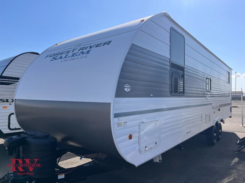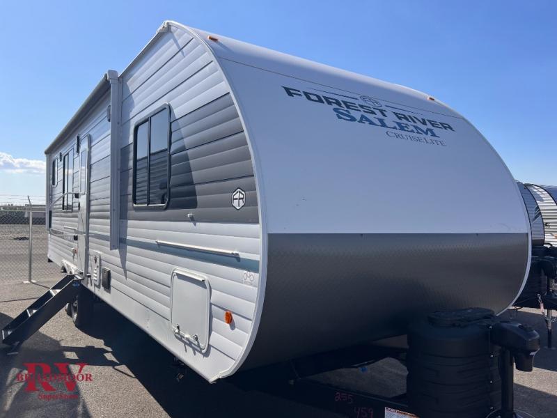 The Salem Cruise Lite travel trailers and toy haulers are value-minded units packed with great camping features! There are a variety of floorplans to choose from between two different regions. The enclosed Accessibelly will help protect against the elements and debris during transport, and the exterior retro/metal redesign is sure to be eye-catching! There are stylish roller shades inside, along with updated backsplash, elegant curtain rods and curtains, plus many more interior comforts! Choose a Salem Cruise Lite today for quality and value!