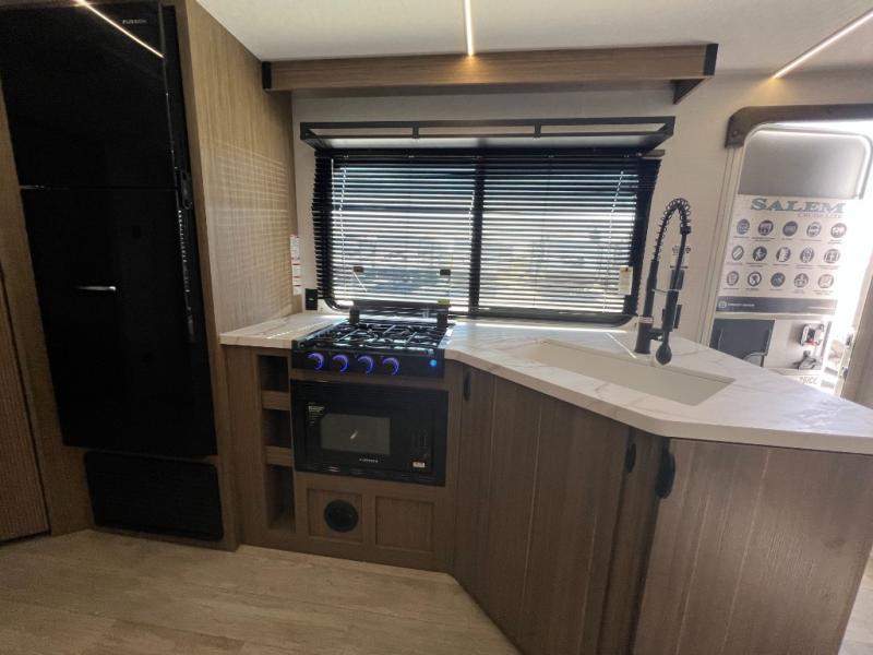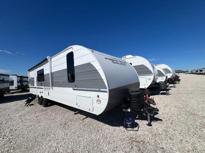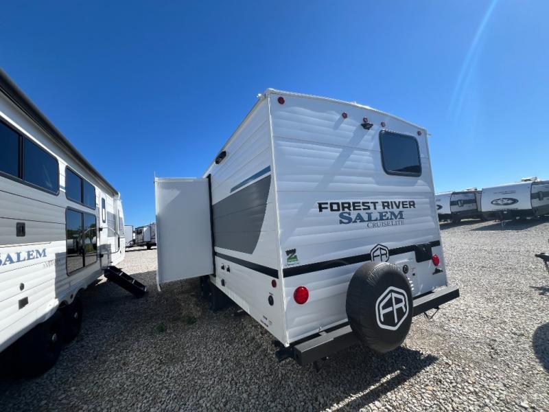 The Salem Cruise Lite travel trailers and toy haulers are value-minded units packed with great camping features! There are a variety of floorplans to choose from between two different regions. The enclosed Accessibelly will help protect against the elements and debris during transport, and the exterior retro/metal redesign is sure to be eye-catching! There are stylish roller shades inside, along with updated backsplash, elegant curtain rods and curtains, plus many more interior comforts! Choose a Salem Cruise Lite today for quality and value!