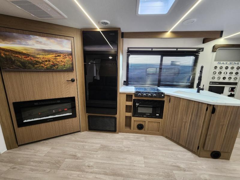 The Salem Cruise Lite travel trailers and toy haulers are value-minded units packed with great camping features! There are a variety of floorplans to choose from between two different regions. The enclosed Accessibelly will help protect against the elements and debris during transport, and the exterior retro/metal redesign is sure to be eye-catching! There are stylish roller shades inside, along with updated backsplash, elegant curtain rods and curtains, plus many more interior comforts! Choose a Salem Cruise Lite today for quality and value!