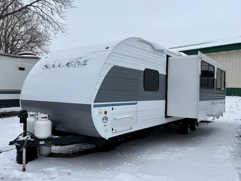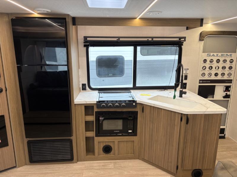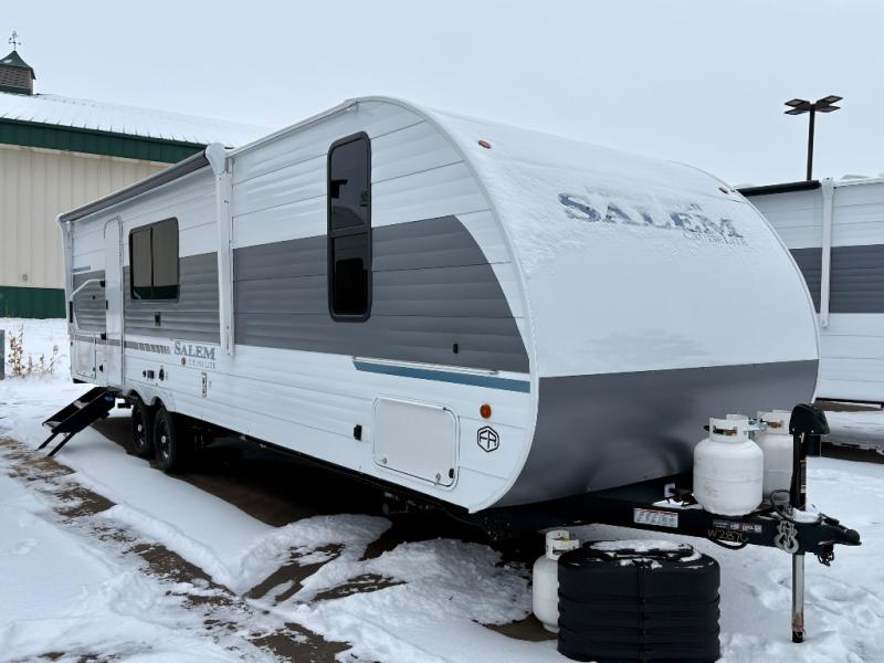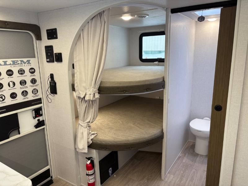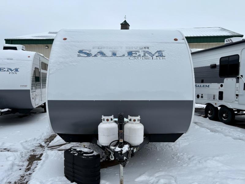 The Salem Cruise Lite travel trailers and toy haulers are value-minded units packed with great camping features! There are a variety of floorplans to choose from between two different regions. The enclosed Accessibelly will help protect against the elements and debris during transport, and the exterior retro/metal redesign is sure to be eye-catching! There are stylish roller shades inside, along with updated backsplash, elegant curtain rods and curtains, plus many more interior comforts! Choose a Salem Cruise Lite today for quality and value!