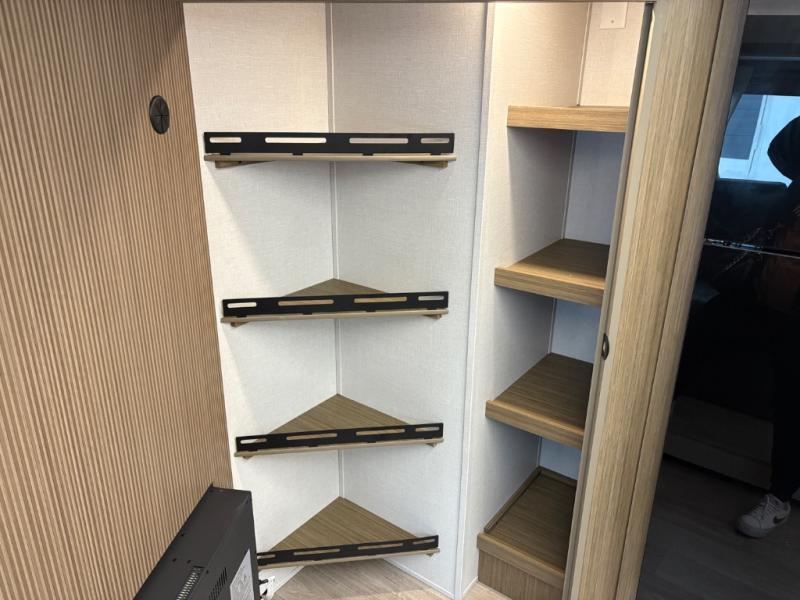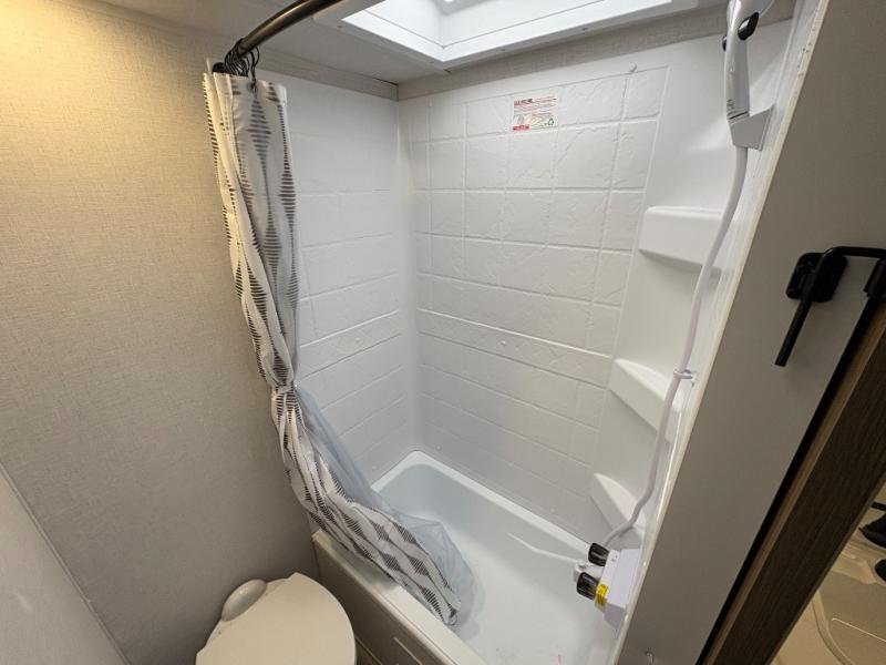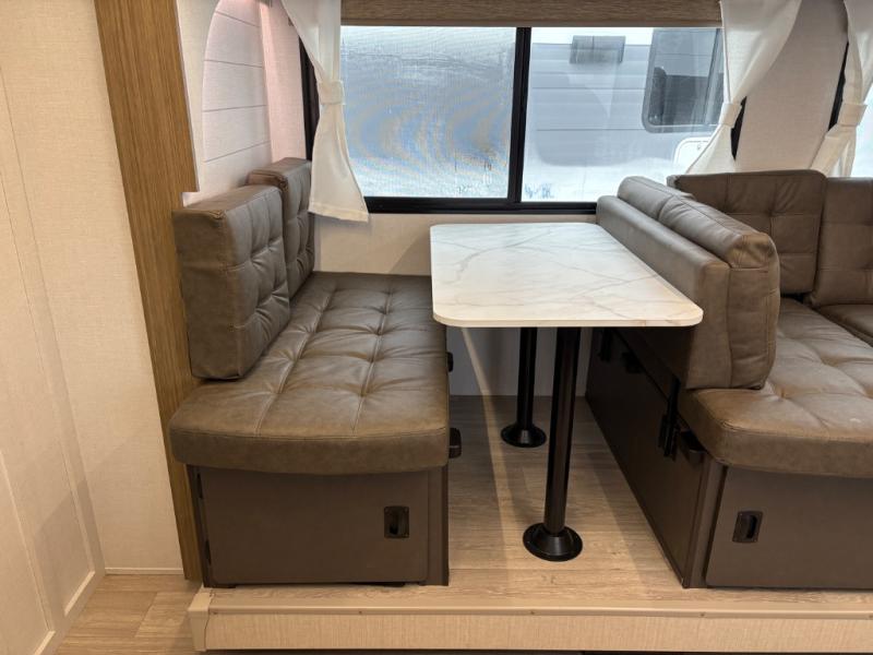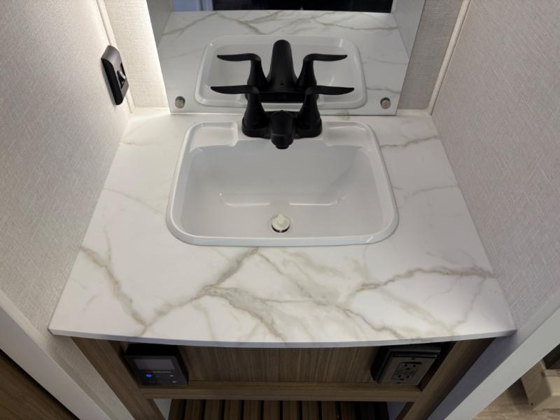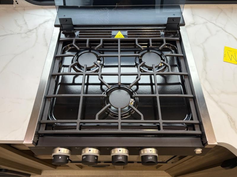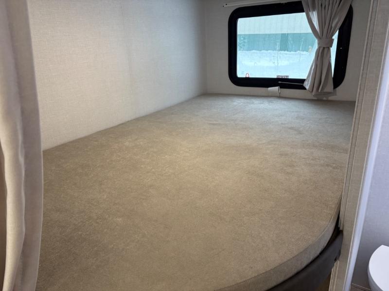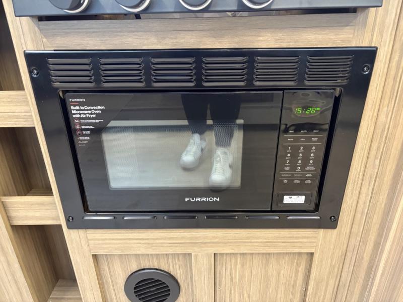 You're sure to make camping memories in this spacious travel trailer! You can easily sleep eight people each night thanks to the double-size bunks, the custom king bed with Versa Tilt in the front bedroom plus the Versa-Lounge within the large slide out! The cooktop and microwave oven will let you make meals each day, and you'll appreciate the hidden pantry with shelves behind the fireplace. There is also a booth dinette where you can dine together or play a game of cards after dinner is cleaned up, or you may just find yourselves outdoors under the 18' awning with 4K blade lighting. And don't overlook the full bath, complete with a tub/shower that will make bath time easier if you have little ones.