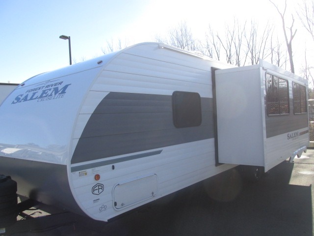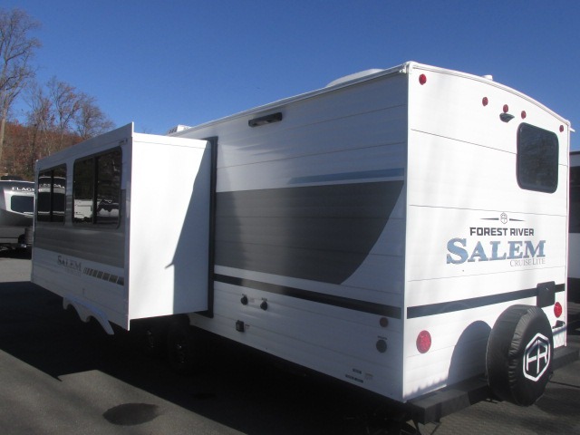 The Salem Cruise Lite travel trailers and toy haulers are value-minded units packed with great camping features! There are a variety of floorplans to choose from between two different regions. The enclosed Accessibelly will help protect against the elements and debris during transport, and the exterior retro/metal redesign is sure to be eye-catching! There are stylish roller shades inside, along with updated backsplash, elegant curtain rods and curtains, plus many more interior comforts! Choose a Salem Cruise Lite today for quality and value!
