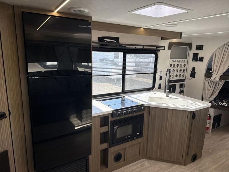 The Salem Cruise Lite travel trailers are packed with hassle-free camping amenities! There are a variety of floorplans to choose from so you can find the best one to fit your needs. The enclosed Accessibelly will help protect against the elements and debris during transport, and the exterior is sure to be eye-catching! There are stylish roller shades inside, along with updated backsplash, elegant curtain rods and curtains, plus many more interior comforts! Choose a Salem Cruise Lite travel trailer today for quality and value!