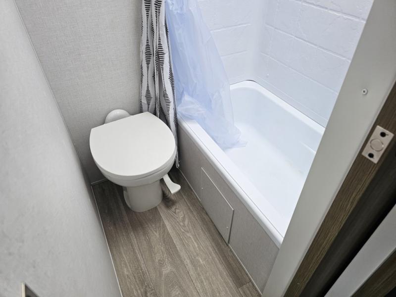 You're sure to make camping memories in this spacious travel trailer! You can easily sleep eight people each night thanks to the double-size bunks, the custom king bed with Versa Tilt in the front bedroom plus the Versa-Lounge within the large slide out! The cooktop and microwave oven will let you make meals each day, and you'll appreciate the hidden pantry with shelves behind the fireplace. There is also a booth dinette where you can dine together or play a game of cards after dinner is cleaned up, or you may just find yourselves outdoors under the 18' awning with 4K blade lighting. And don't overlook the full bath, complete with a tub/shower that will make bath time easier if you have little ones.