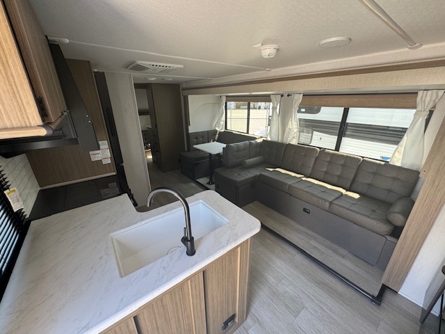 Fully Equipped Kitchen: Cook up your favorite meals with a cooktop, microwave, and 12V refrigerator, and store dry goods in the large pantry.