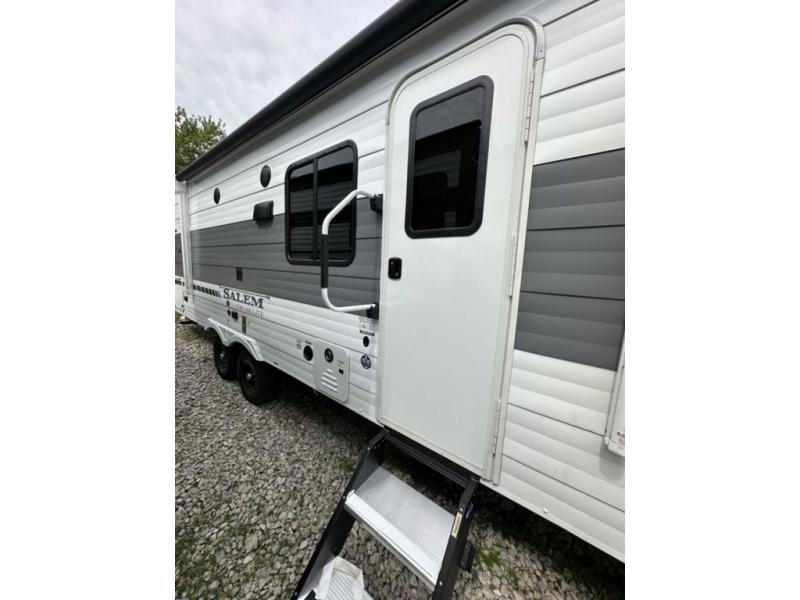 The Salem Cruise Lite travel trailers and toy haulers are value-minded units packed with great camping features! There are a variety of floorplans to choose from between two different regions. The enclosed Accessibelly will help protect against the elements and debris during transport, and the exterior retro/metal redesign is sure to be eye-catching! There are stylish roller shades inside, along with updated backsplash, elegant curtain rods and curtains, plus many more interior comforts! Choose a Salem Cruise Lite today for quality and value!