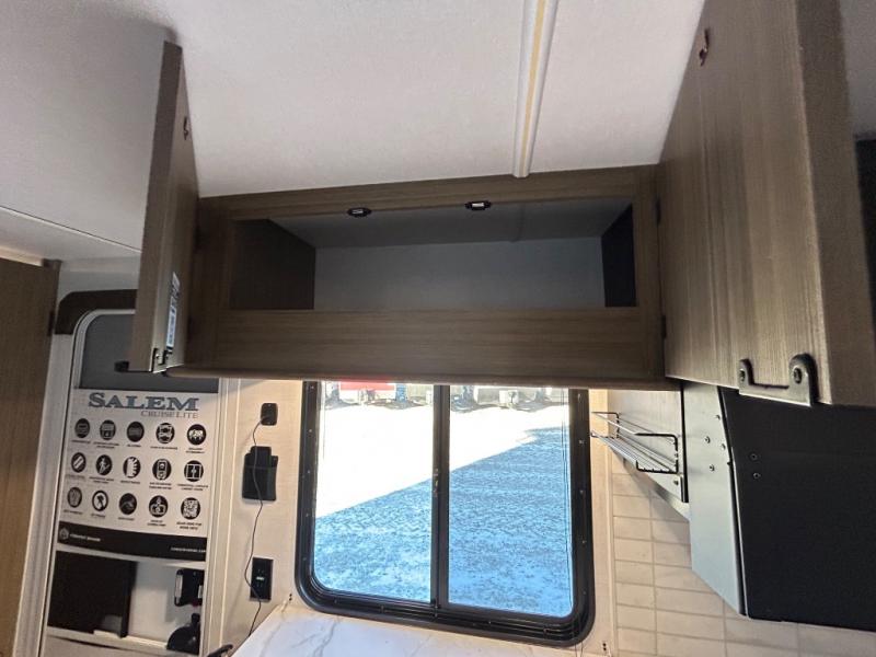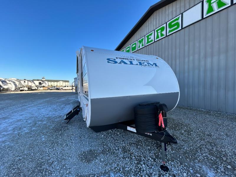 The Salem Cruise Lite travel trailers are packed with hassle-free camping amenities! There are a variety of floorplans to choose from so you can find the best one to fit your needs. The enclosed Accessibelly will help protect against the elements and debris during transport, and the exterior retro/metal redesign is sure to be eye-catching! There are stylish roller shades inside, along with updated backsplash, elegant curtain rods and curtains, plus many more interior comforts! Choose a Salem Cruise Lite travel trailer today for quality and value!