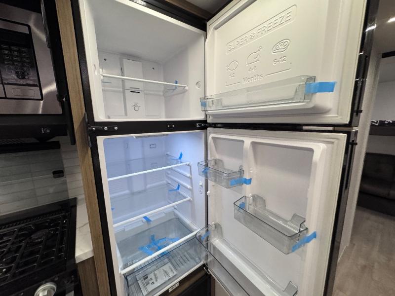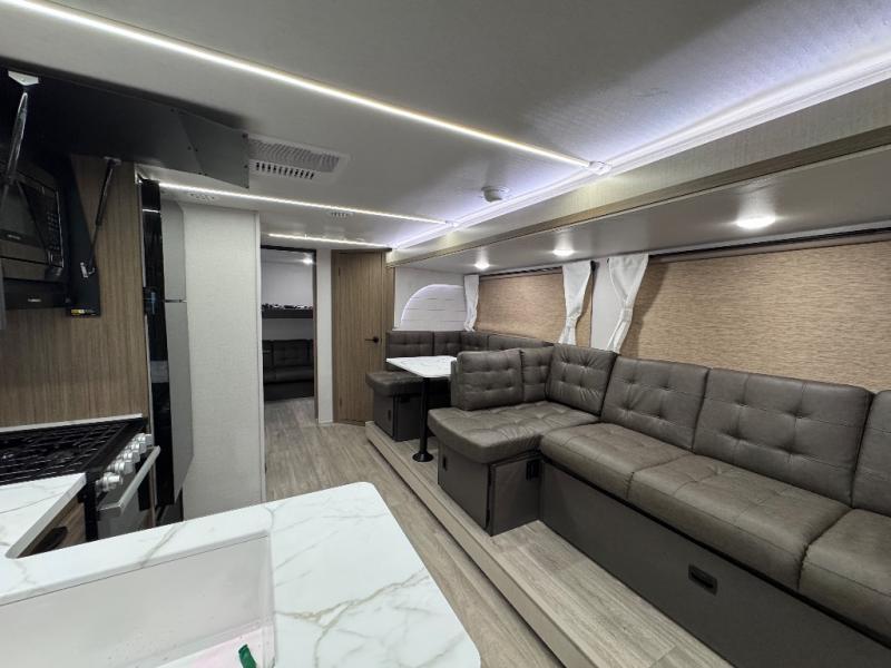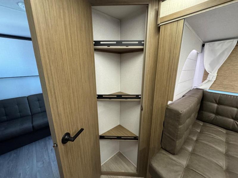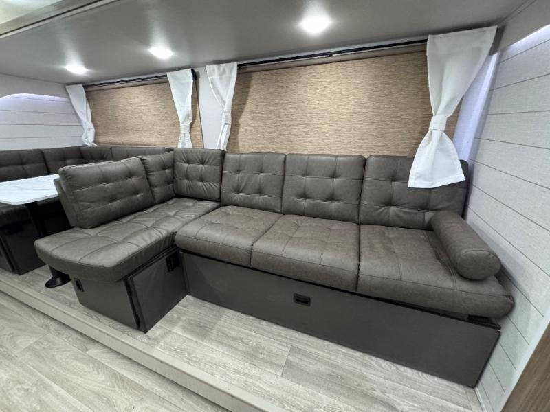 This versatile bunkhouse travel trailer is big enough for the whole family! The private bunkhouse has a 30" x 74" bunk bed and a 30" x 74"-fold-up bunk bed above a Jiffy sofa. Just outside the bunkhouse is a pantry big enough to store everyone's favorite snacks, and a full bathroom with a walk-in shower. The cooktop is just waiting for you to create a delicious meal, and the U-shaped dinette welcomes everyone to enjoy each meal in comfort, plus there is a large panoramic window for a perfect view of your surroundings. Any time of day you can kick back on the Versa-lounge and relax by the fireplace at the entertainment center. The exterior features a pass-through storage area for you to keep your outdoor camping gear stowed away when not in use and a 16' awning to protect you.