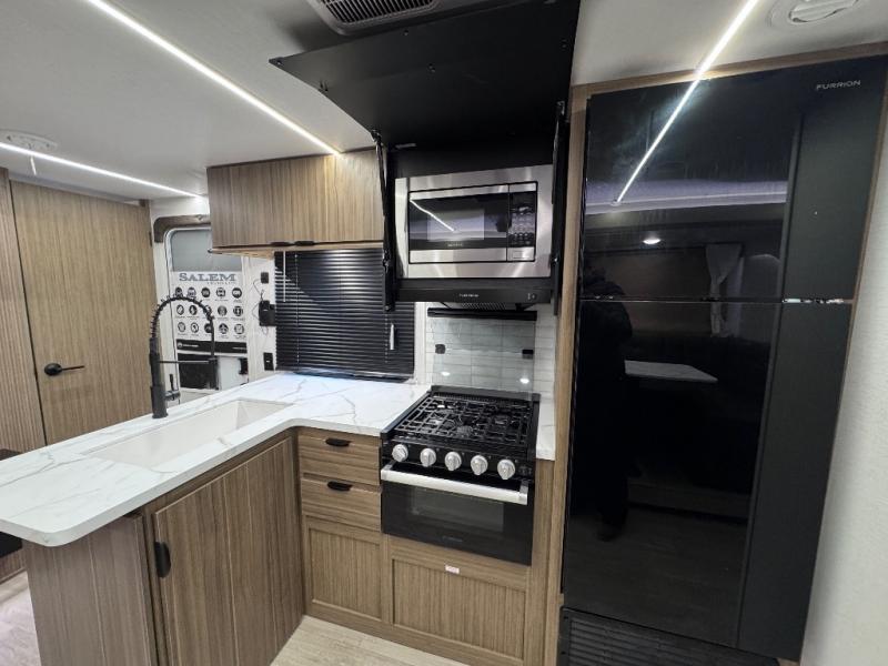 The Salem Cruise Lite travel trailers are packed with hassle-free camping amenities! There are a variety of floorplans to choose from so you can find the best one to fit your needs. The enclosed Accessibelly will help protect against the elements and debris during transport, and the exterior retro/metal redesign is sure to be eye-catching! There are stylish roller shades inside, along with updated backsplash, elegant curtain rods and curtains, plus many more interior comforts! Choose a Salem Cruise Lite travel trailer today for quality and value!