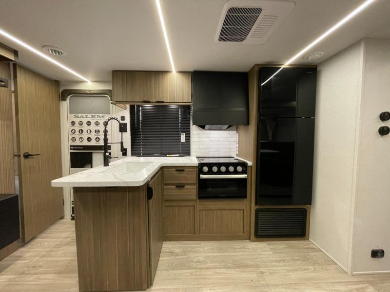 The Salem Cruise Lite travel trailers are packed with hassle-free camping amenities! There are a variety of floorplans to choose from so you can find the best one to fit your needs. The enclosed Accessibelly will help protect against the elements and debris during transport, and the exterior retro/metal redesign is sure to be eye-catching! There are stylish roller shades inside, along with updated backsplash, elegant curtain rods and curtains, plus many more interior comforts! Choose a Salem Cruise Lite travel trailer today for quality and value!