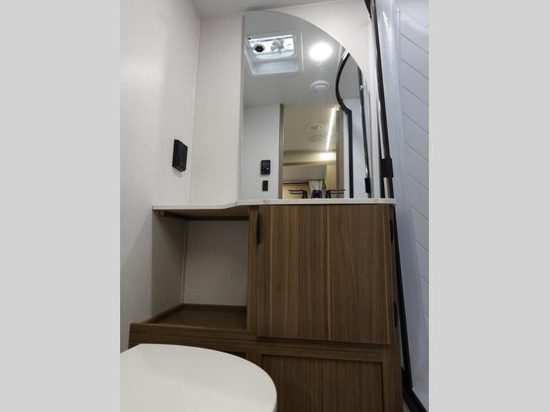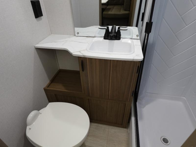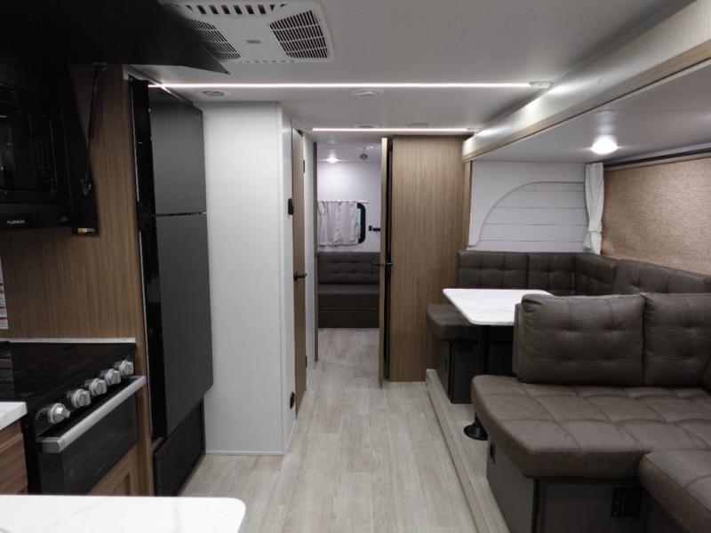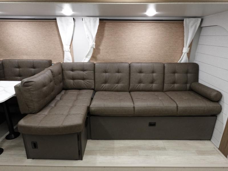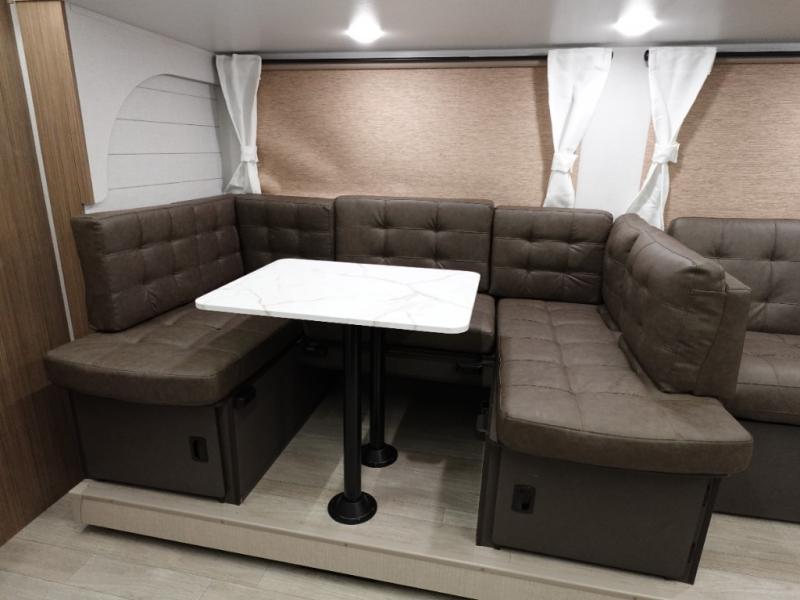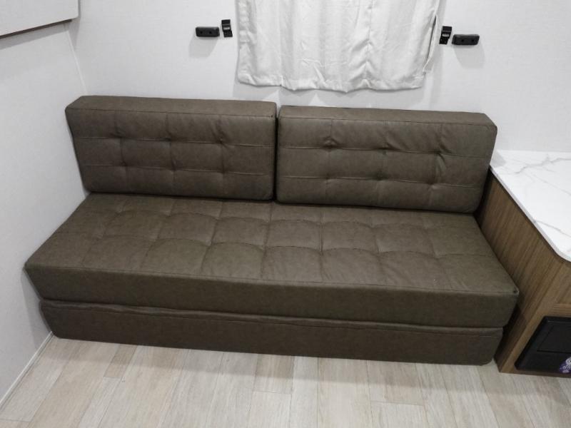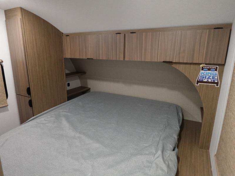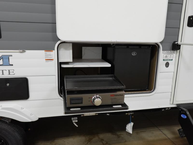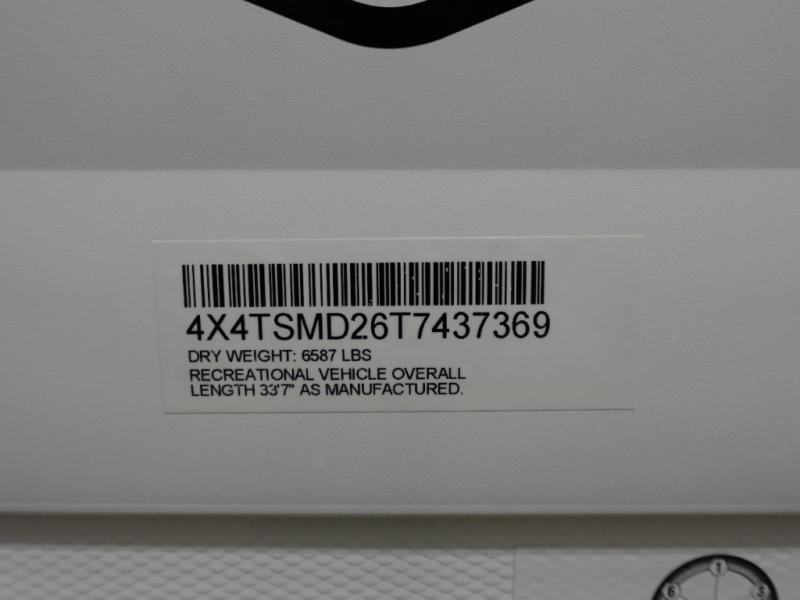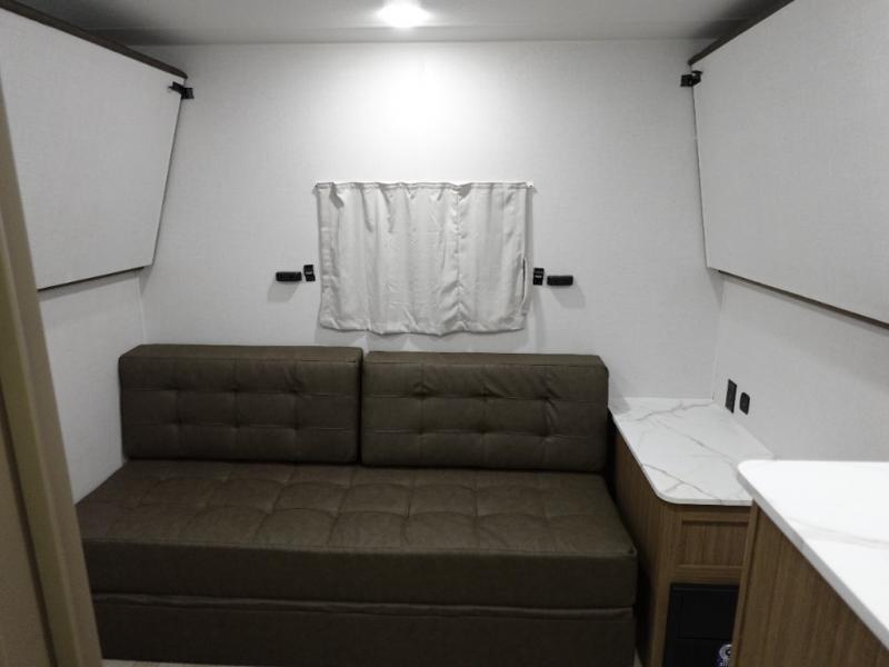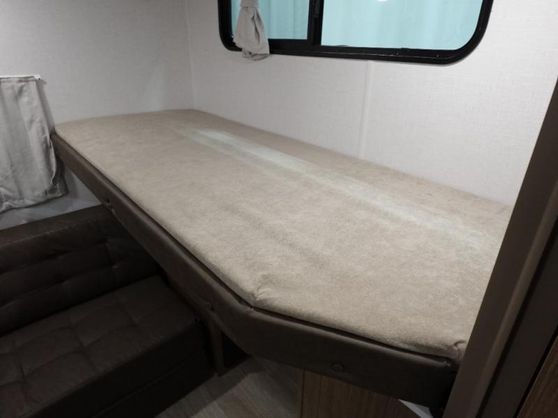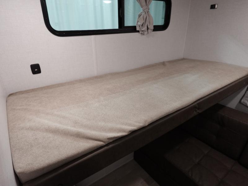 This travel trailer is new to the lineup and offers a large amount of versatility! The rear private bunkhouse has two 30" x 74" Versa-bunks and a Versa-queen bed so that more can join in on the camping fun. Start each morning feeling clean and fresh after showering in the walk-in shower with fiberglass surround then head to the front private bedroom to change. The kitchen has an oversized refrigerator to keep your perishables fresh, a cooktop for meals, and a U-shaped dinette for dining, game time, or just hanging out.