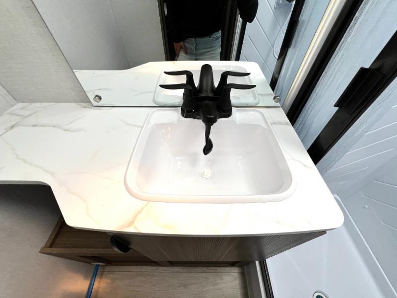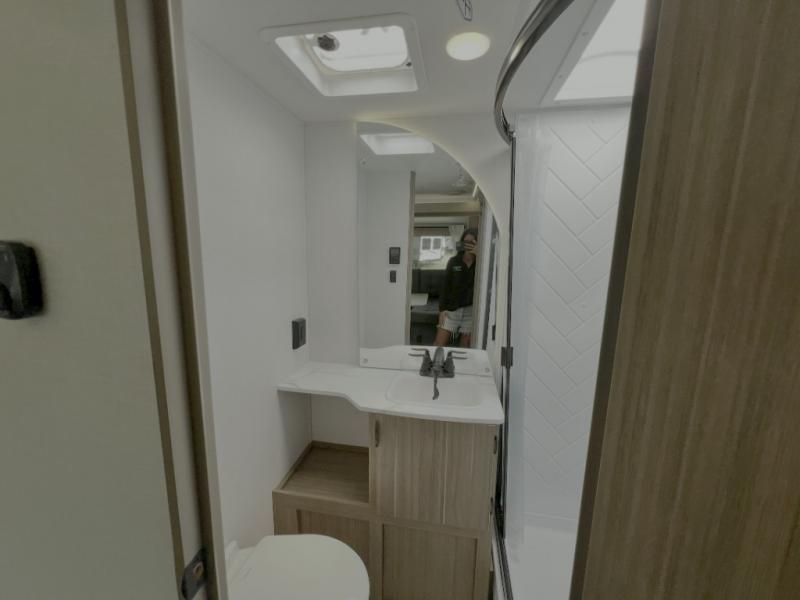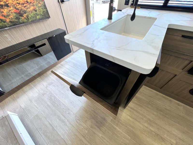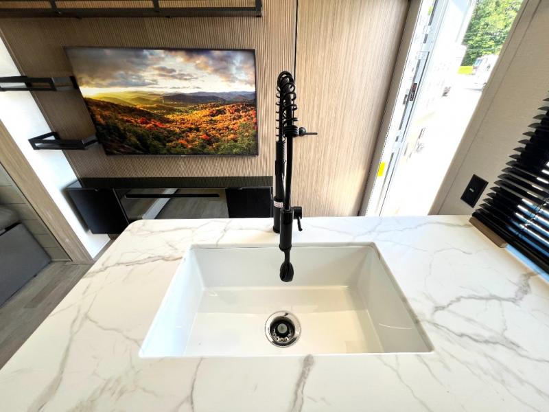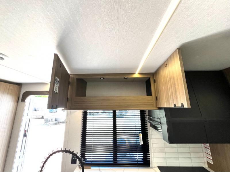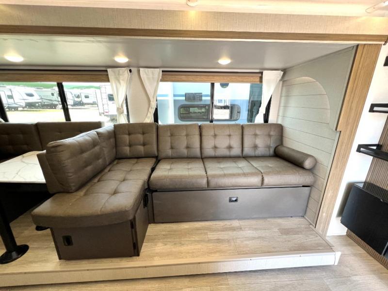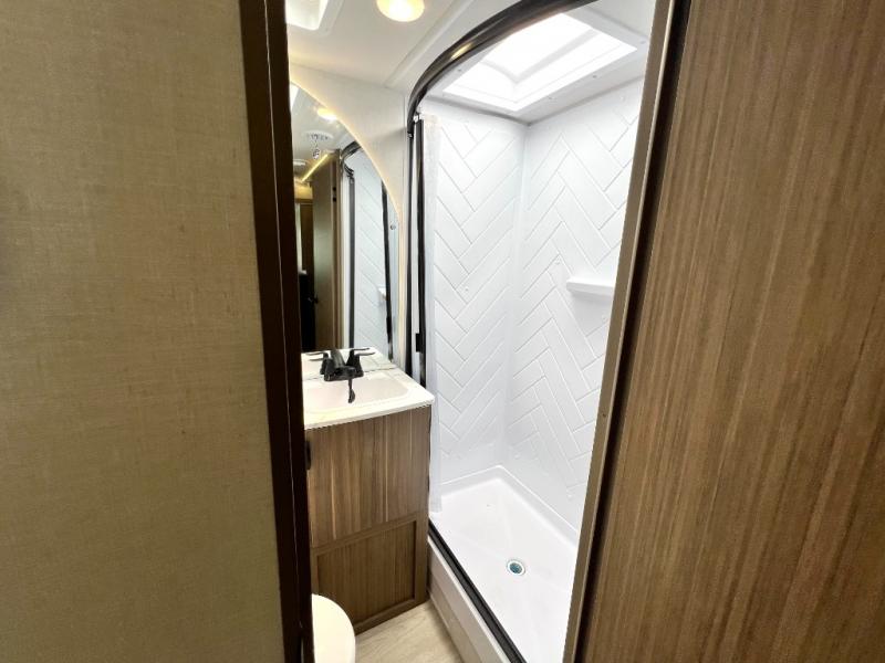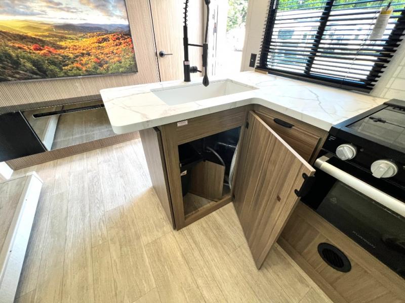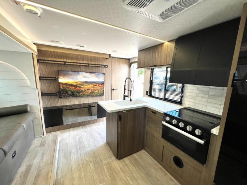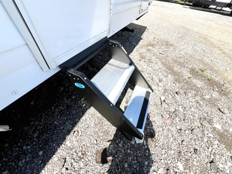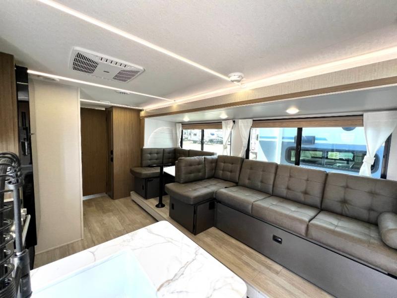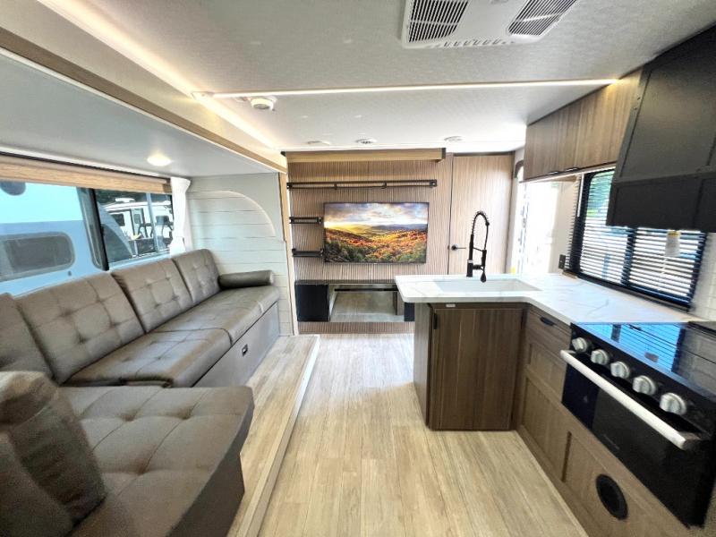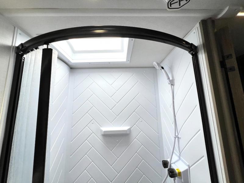 This travel trailer is new to the lineup and offers a large amount of versatility! The rear private bunkhouse has two 30" x 74" Versa-bunks and a Versa-queen bed so that more can join in on the camping fun. Start each morning feeling clean and fresh after showering in the walk-in shower with fiberglass surround then head to the front private bedroom to change. The kitchen has an oversized refrigerator to keep your perishables fresh, a cooktop for meals, and a U-shaped dinette for dining, game time, or just hanging out.